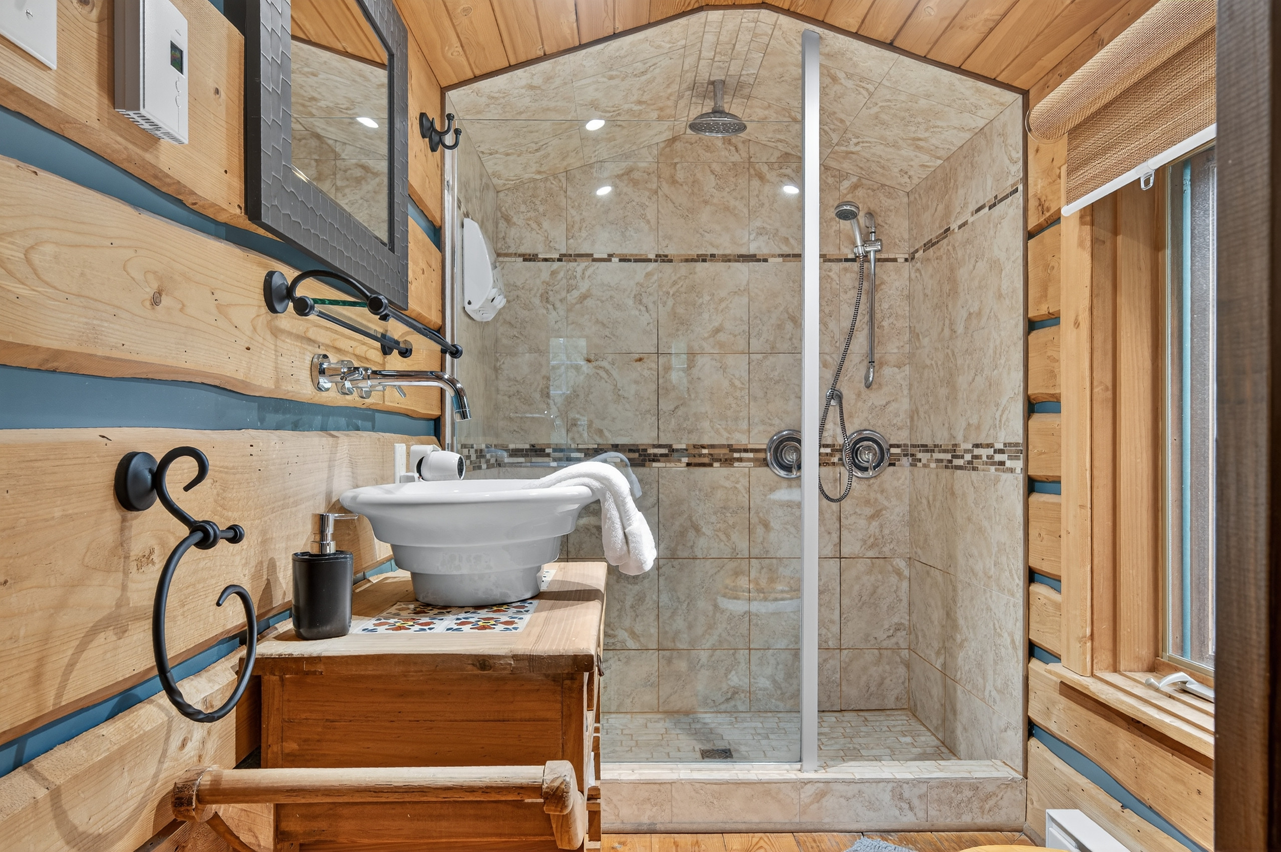Une salle de bain privative avec douche vous permet de profiter de moments de détente personnels. Tout est prévu pour votre confort et votre hygiène.