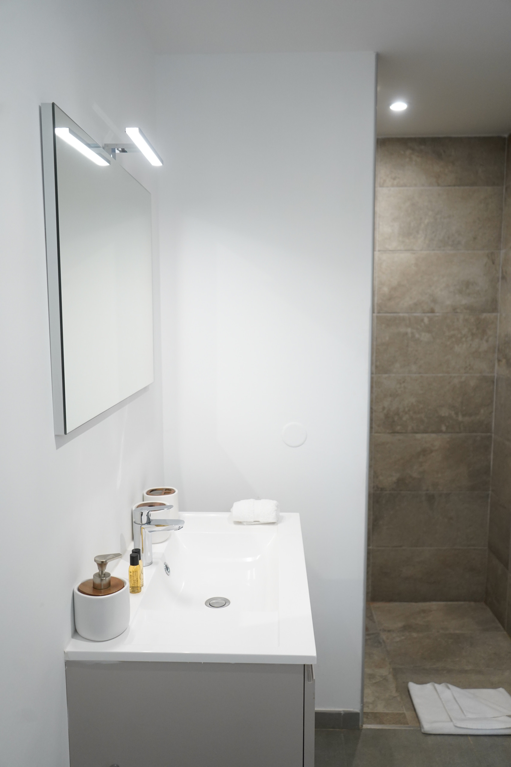 Le logement se compose d’une chambre climatisée avec salle de bain attenante (douche et WC), d’un séjour lumineux équipé d’une télévision connectée et d’une connexion internet, et d’une cuisine aménagée avec four, réfrigérateur et lave-linge.