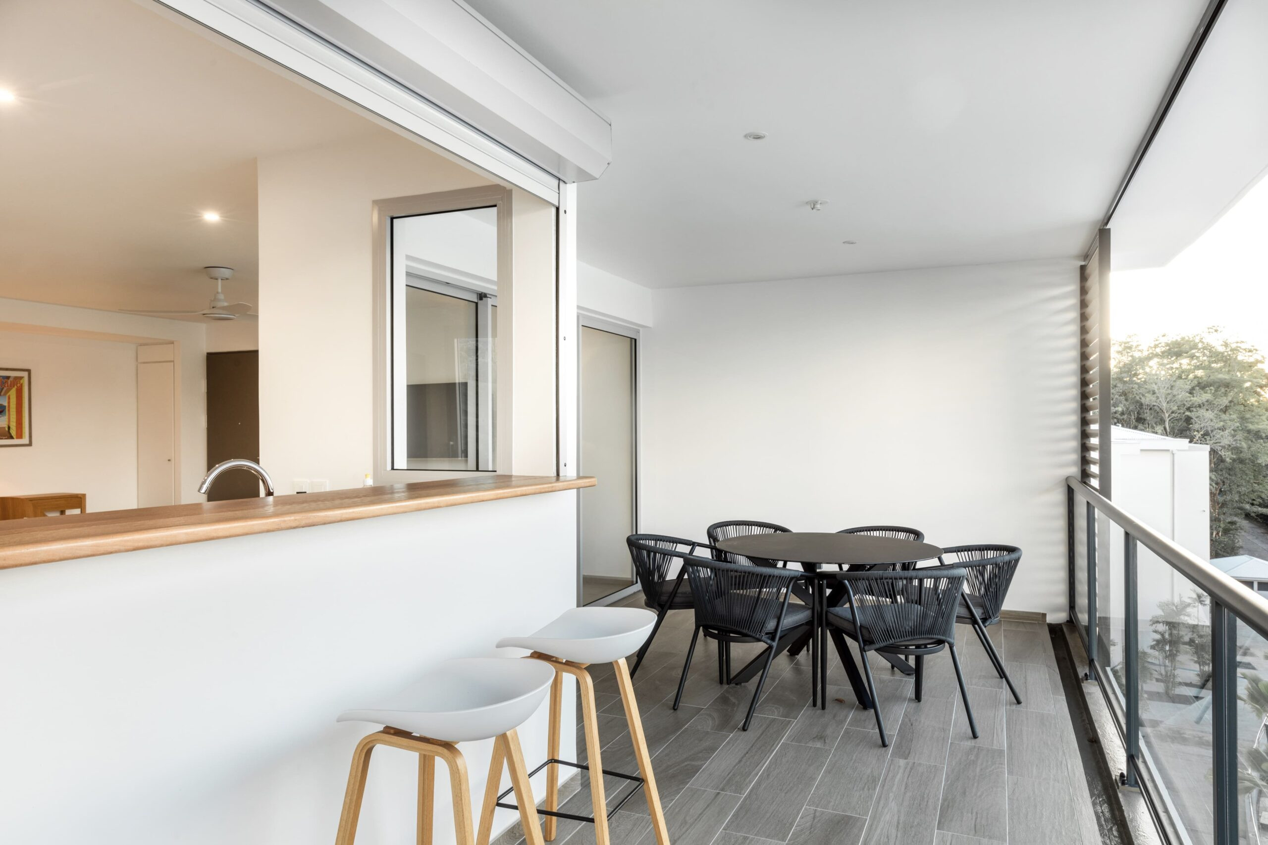 🥥 La cuisine moderne et entièrement équipée (Nespresso, cafetière classique, lave-vaisselle, four, micro-ondes…) est ouverte sur un bar donnant directement sur la terrasse, parfaite pour partager des moments conviviaux.