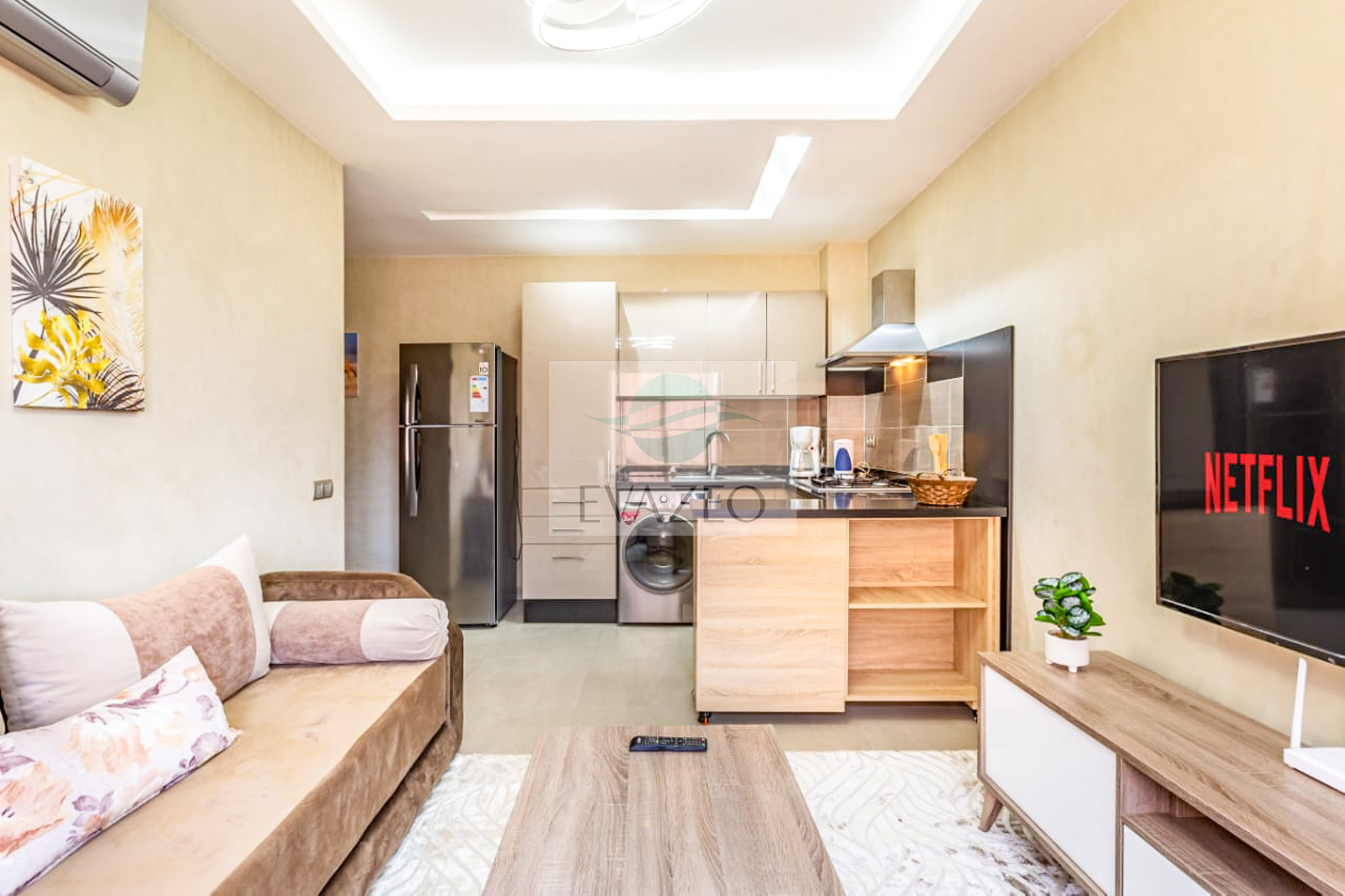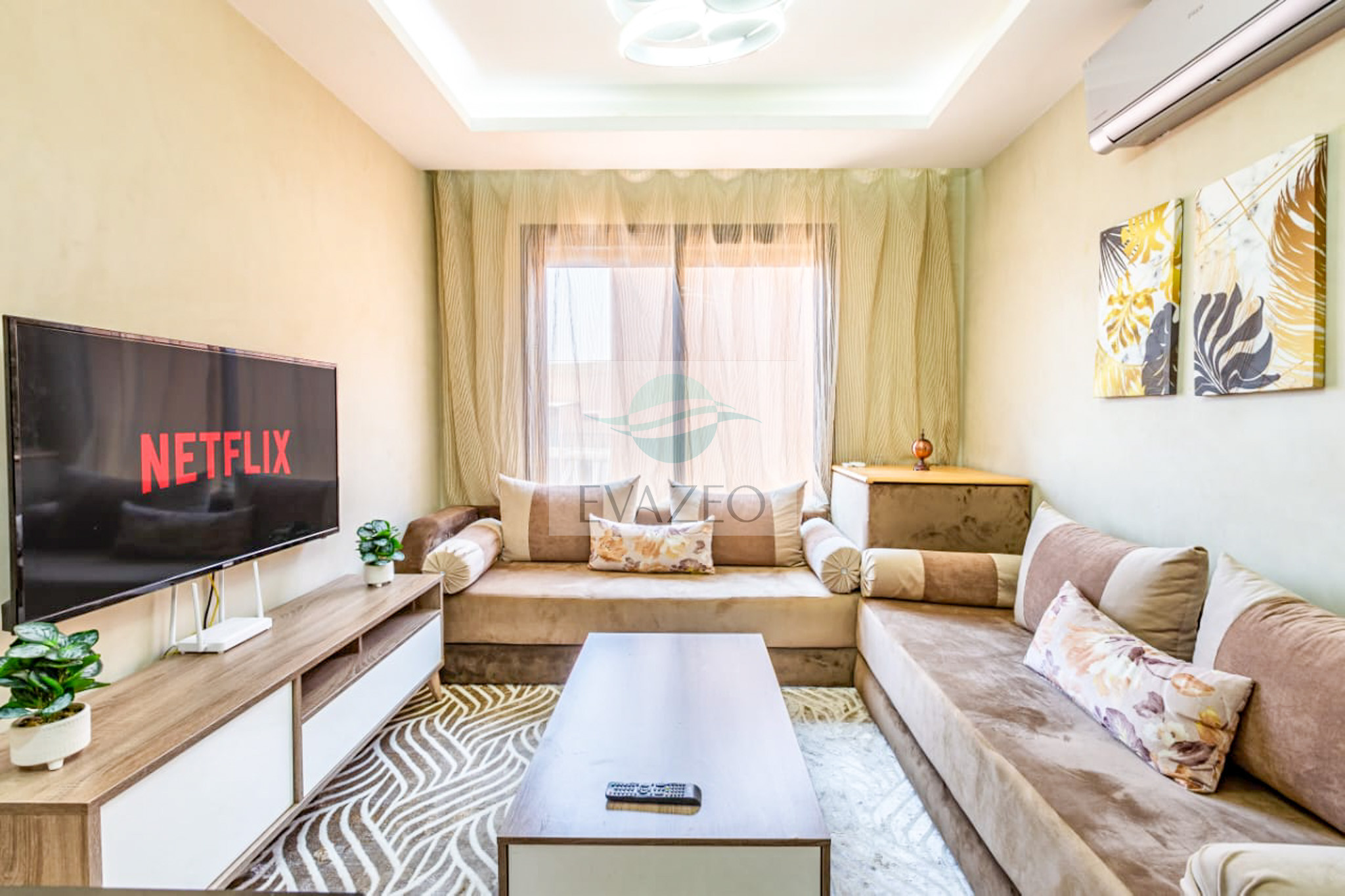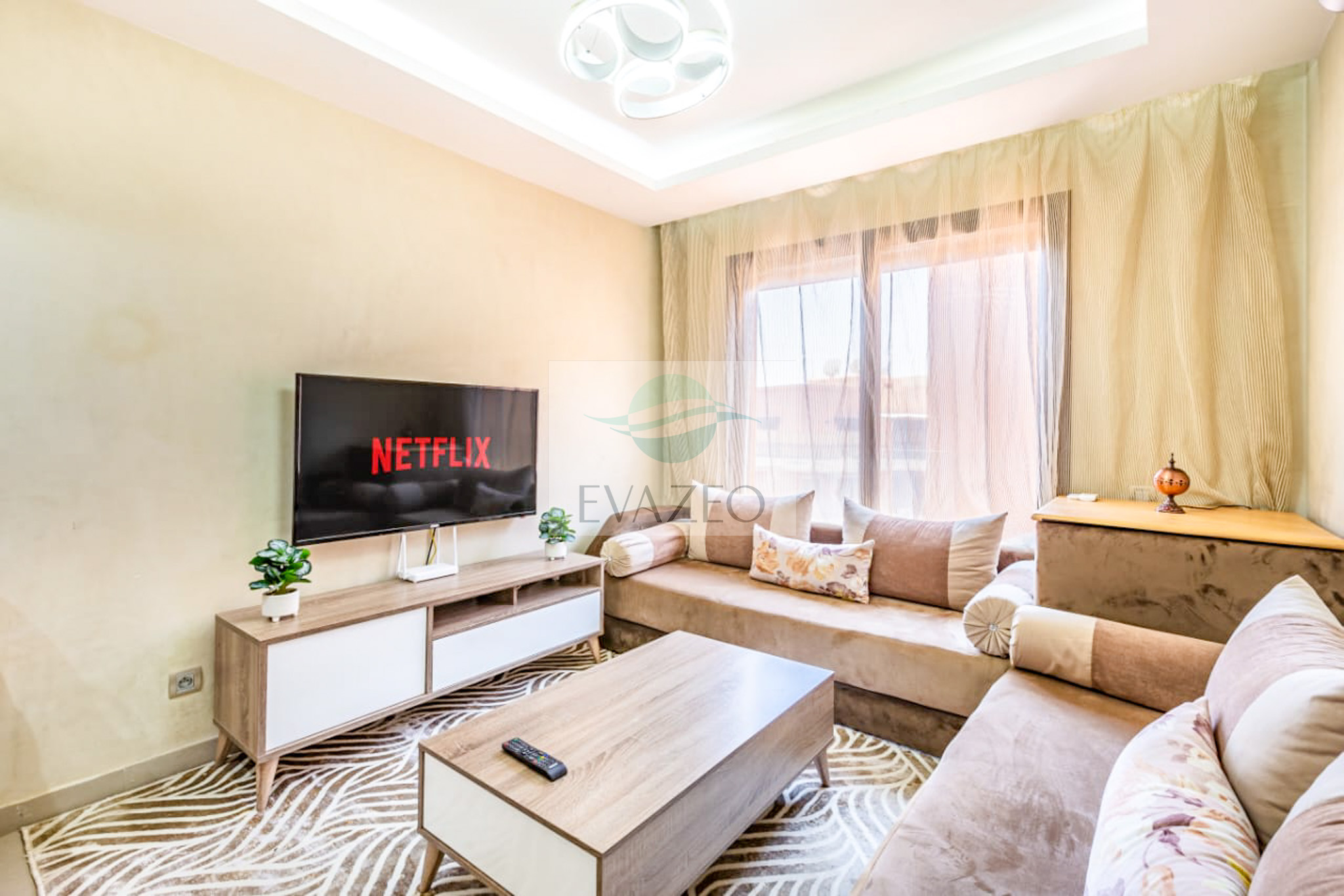 🛋️ Salon moderne avec grande TV connectée (Netflix inclus)