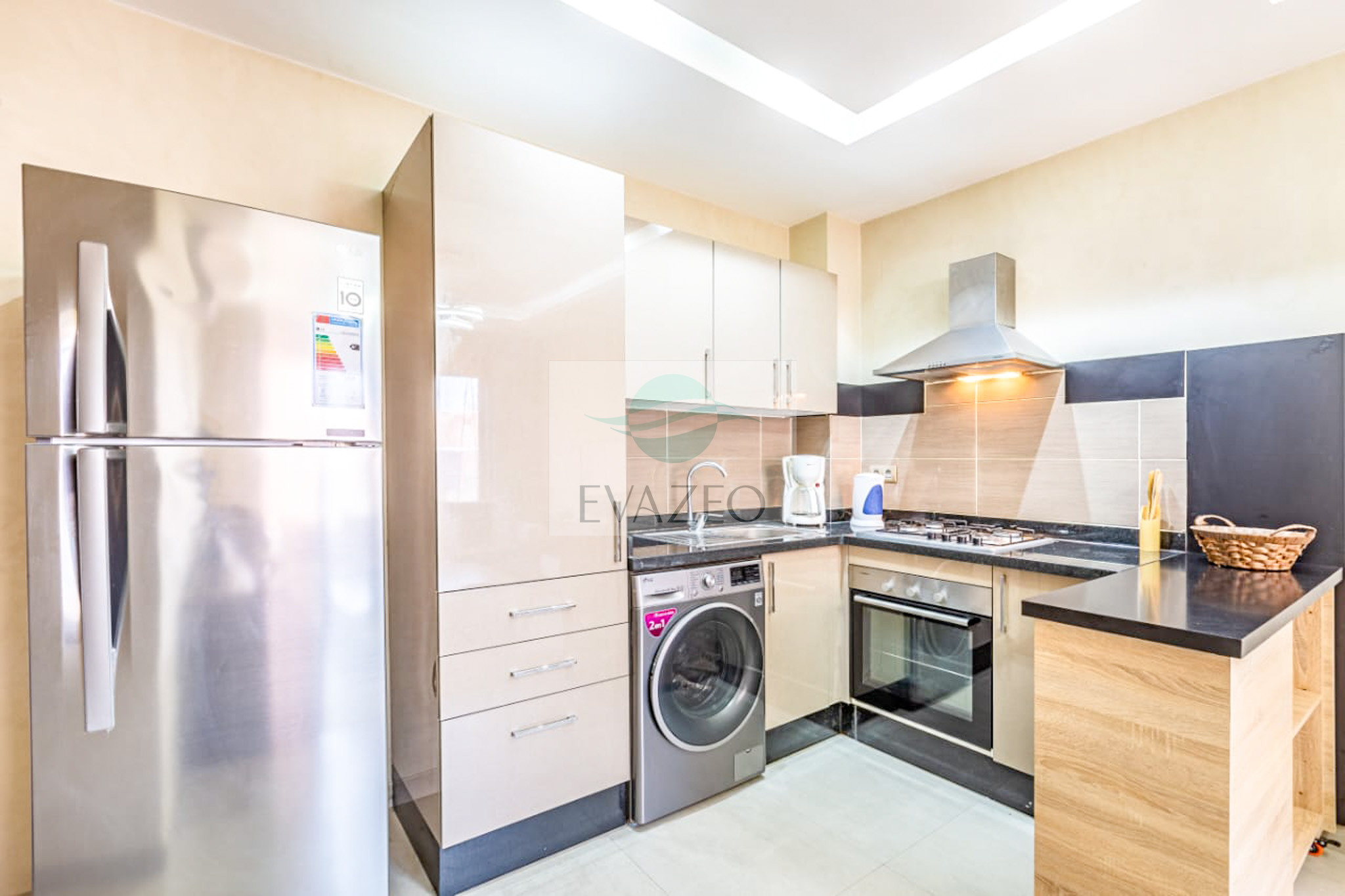🍽️ Cuisine équipée : four, micro-ondes, machine à laver, réfrigérateur, plaque de cuisson, cafetière…