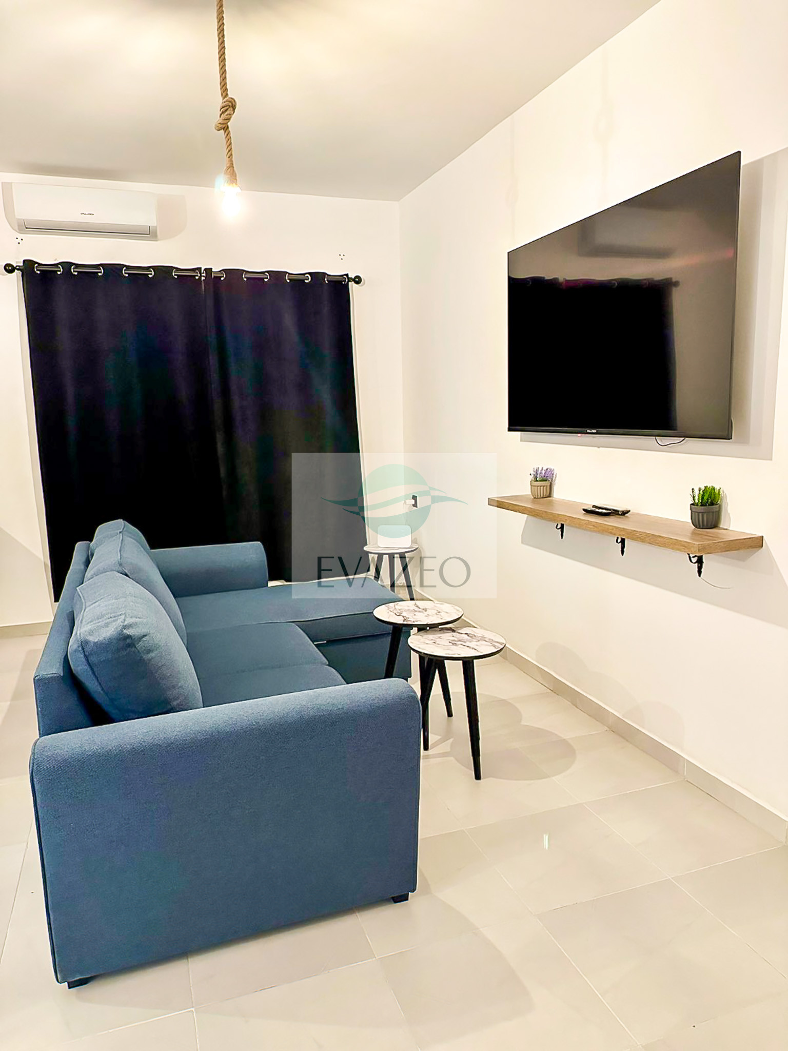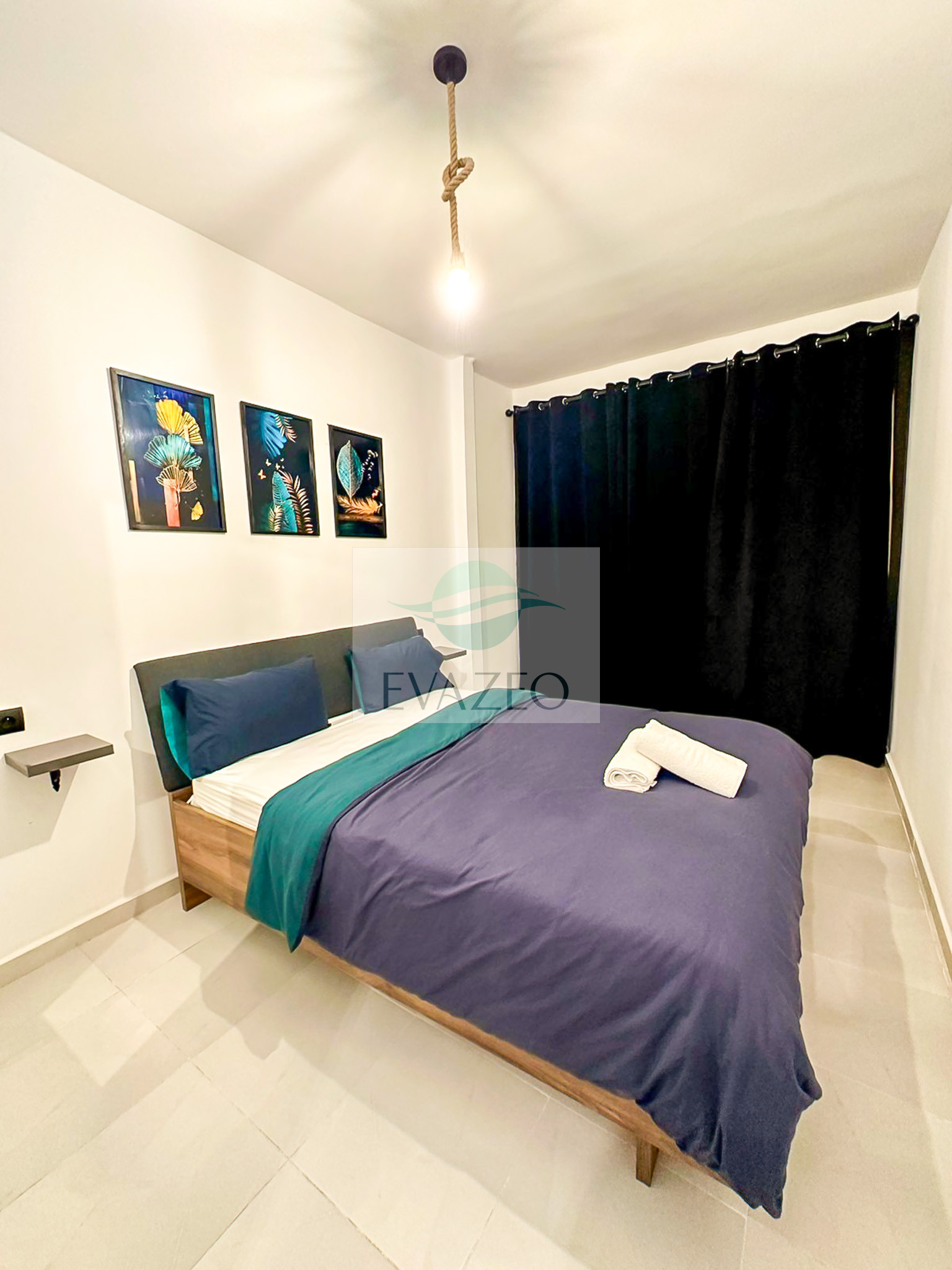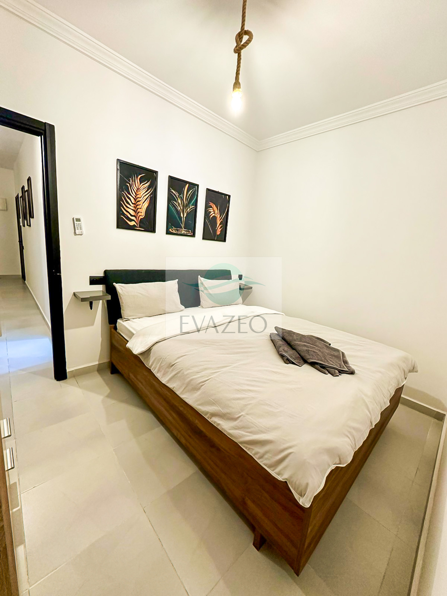 L'appartement dispose de deux chambres avec deux lits queen size, parfaits pour accueillir jusqu'à 4 personnes. La cuisine indépendante est entièrement équipée avec des appareils modernes : réfrigérateur, congélateur, machine à café, four, et une collection complète de vaisselle et ustensiles de cuisine.