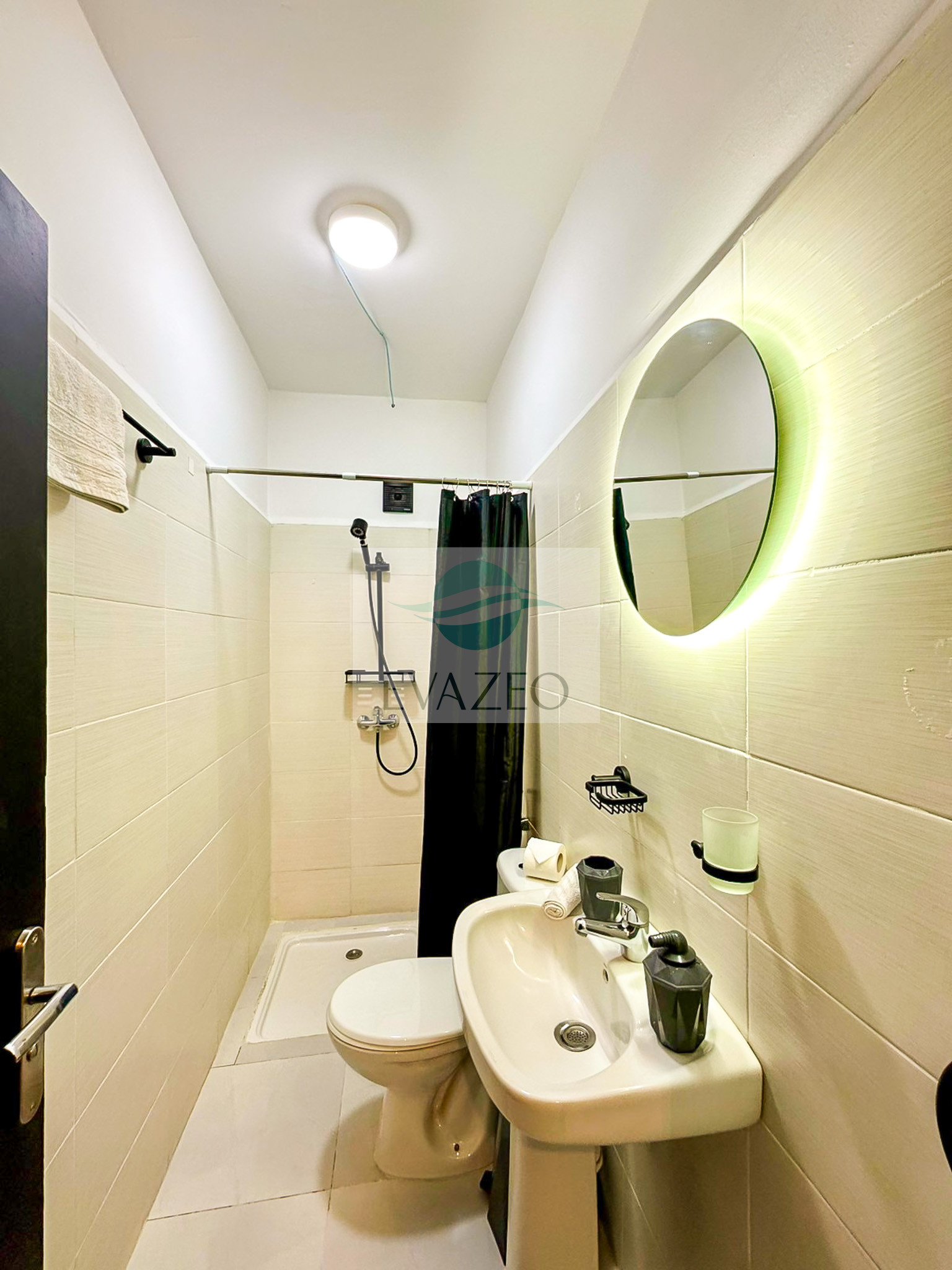 L'appartement dispose d'un agencement pratique comprenant un lit queen size et deux lits individuels, offrant un espace de repos confortable pour tous les occupants. La salle de bain avec douche répondra à tous vos besoins de confort et d'hygiène.