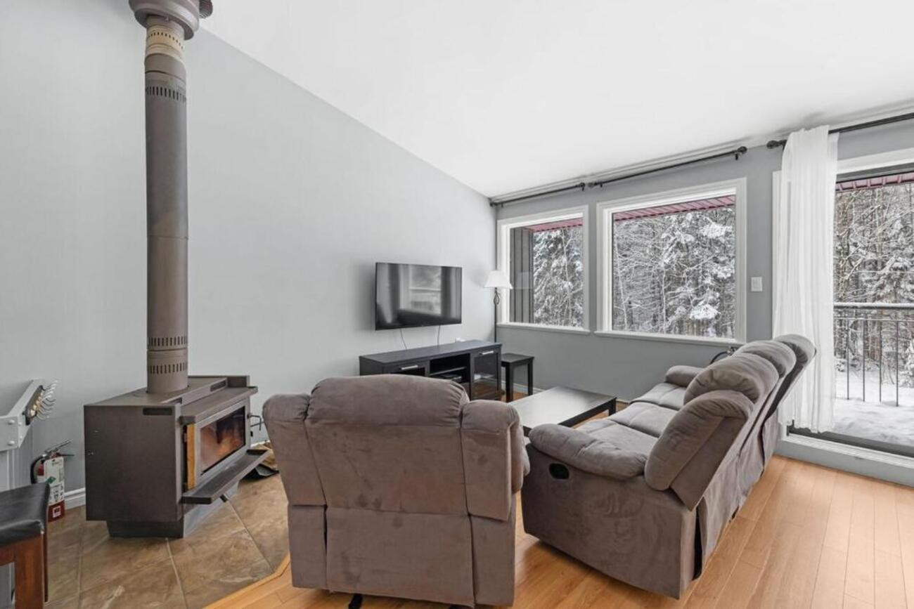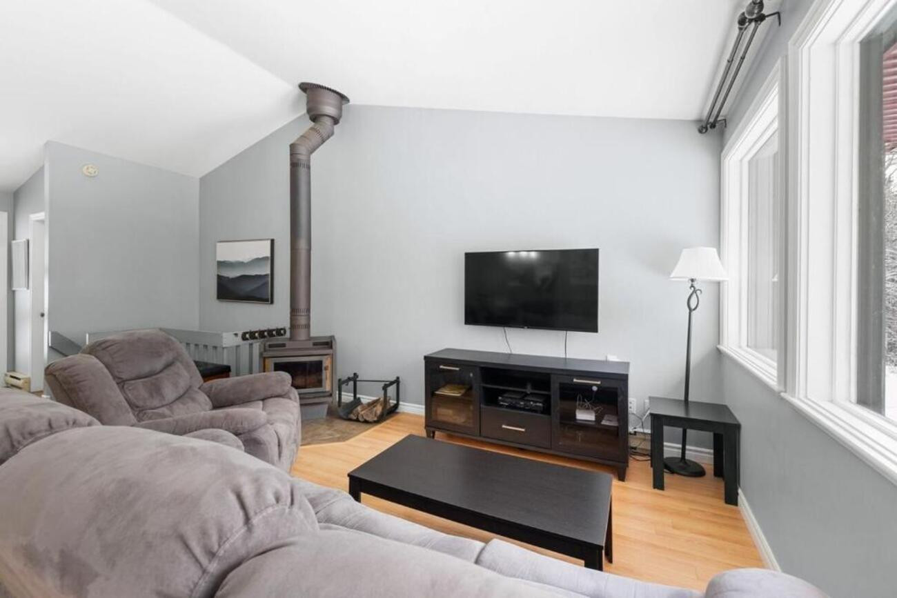 Située dans un environnement rural, la propriété offre une vue imprenable sur les pistes de ski, idéale pour les amateurs de sports d'hiver. La proximité de Québec (30 km) et de l'aéroport international Jean-Lesage (35 km) facilite l'accès. Un barbecue est disponible pour des moments de partage en extérieur.