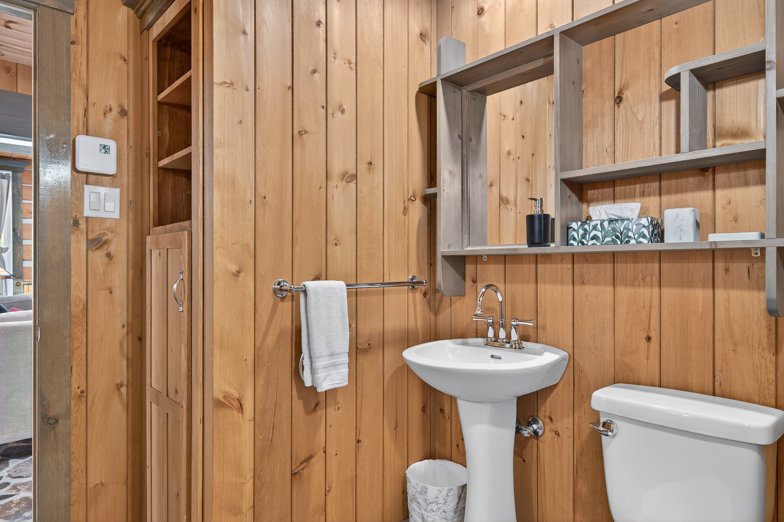 Une salle de bain complète avec baignoire vous permet de vous détendre et de vous rafraîchir en toute tranquillité.