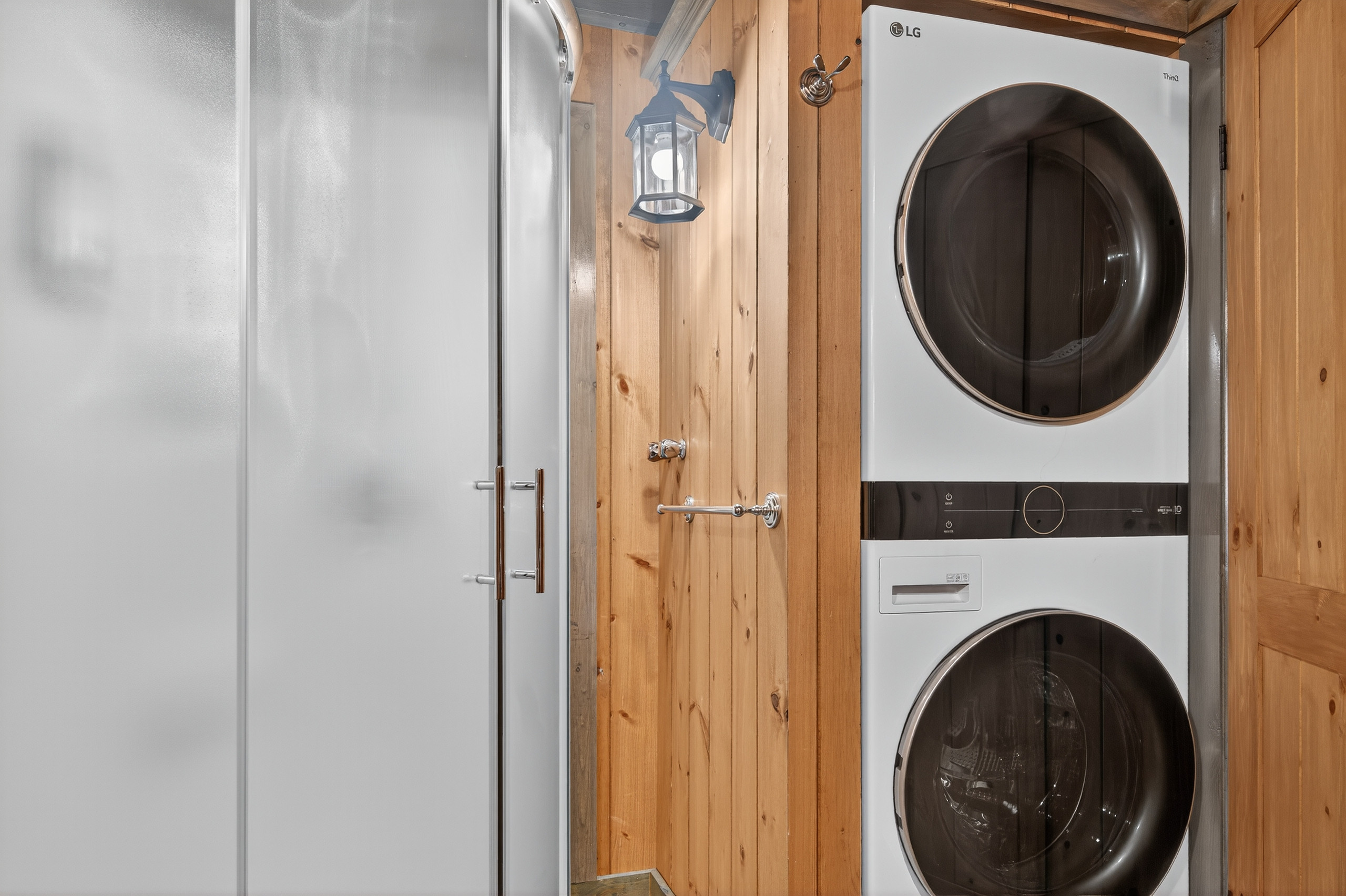 La cuisine américaine à vitrocéramique est entièrement équipée avec réfrigérateur, congélateur, four, micro-ondes, lave-vaisselle, cafetière, grille-pain, bouilloire et tous les ustensiles nécessaires. Vous aurez également accès à une machine à laver et un sèche-linge pour plus de commodité.