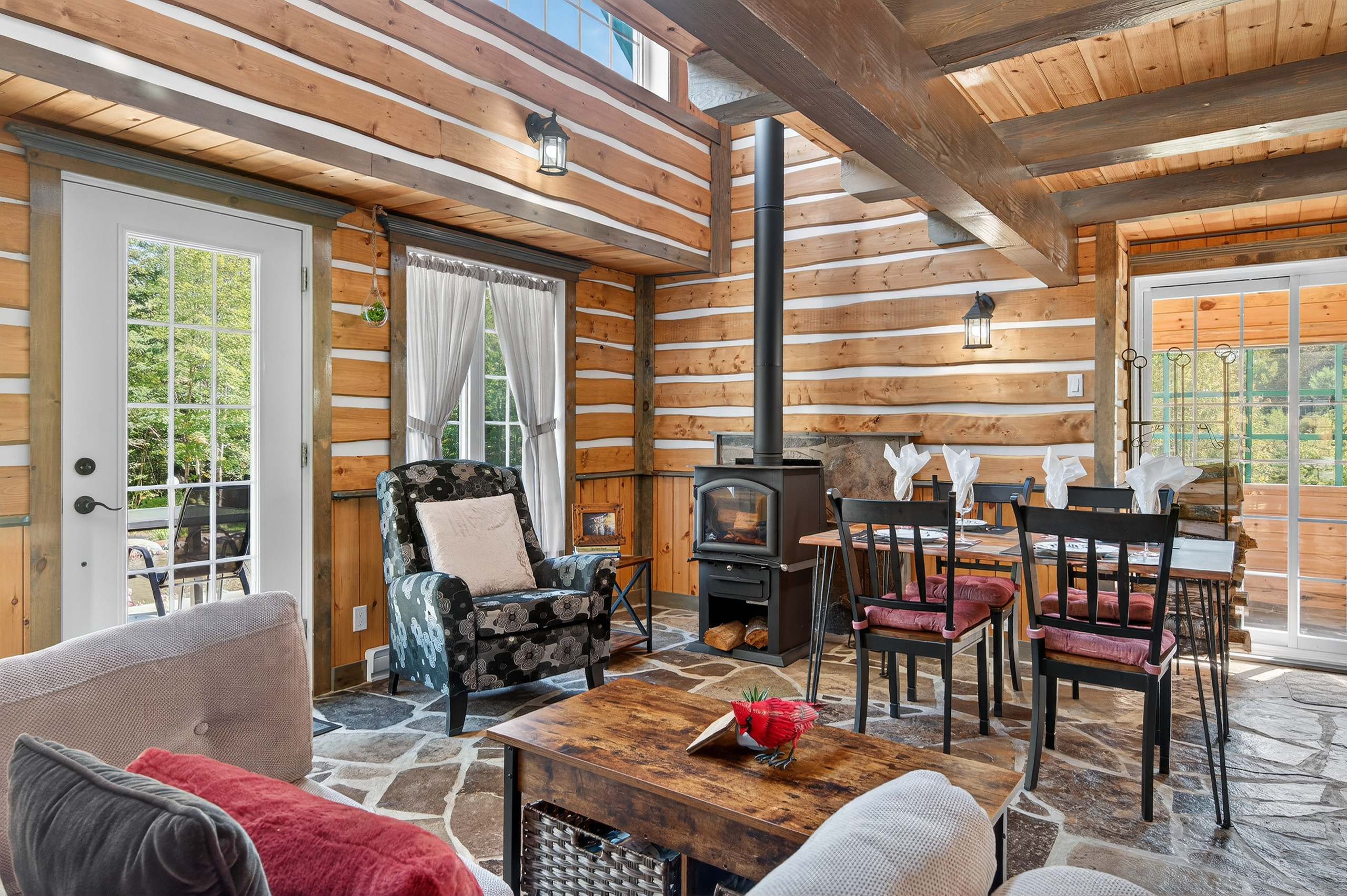 Le Chalet Le Cardinal est l'endroit parfait pour créer des souvenirs inoubliables en famille, en couple ou entre amis, combinant confort moderne et charme rural!