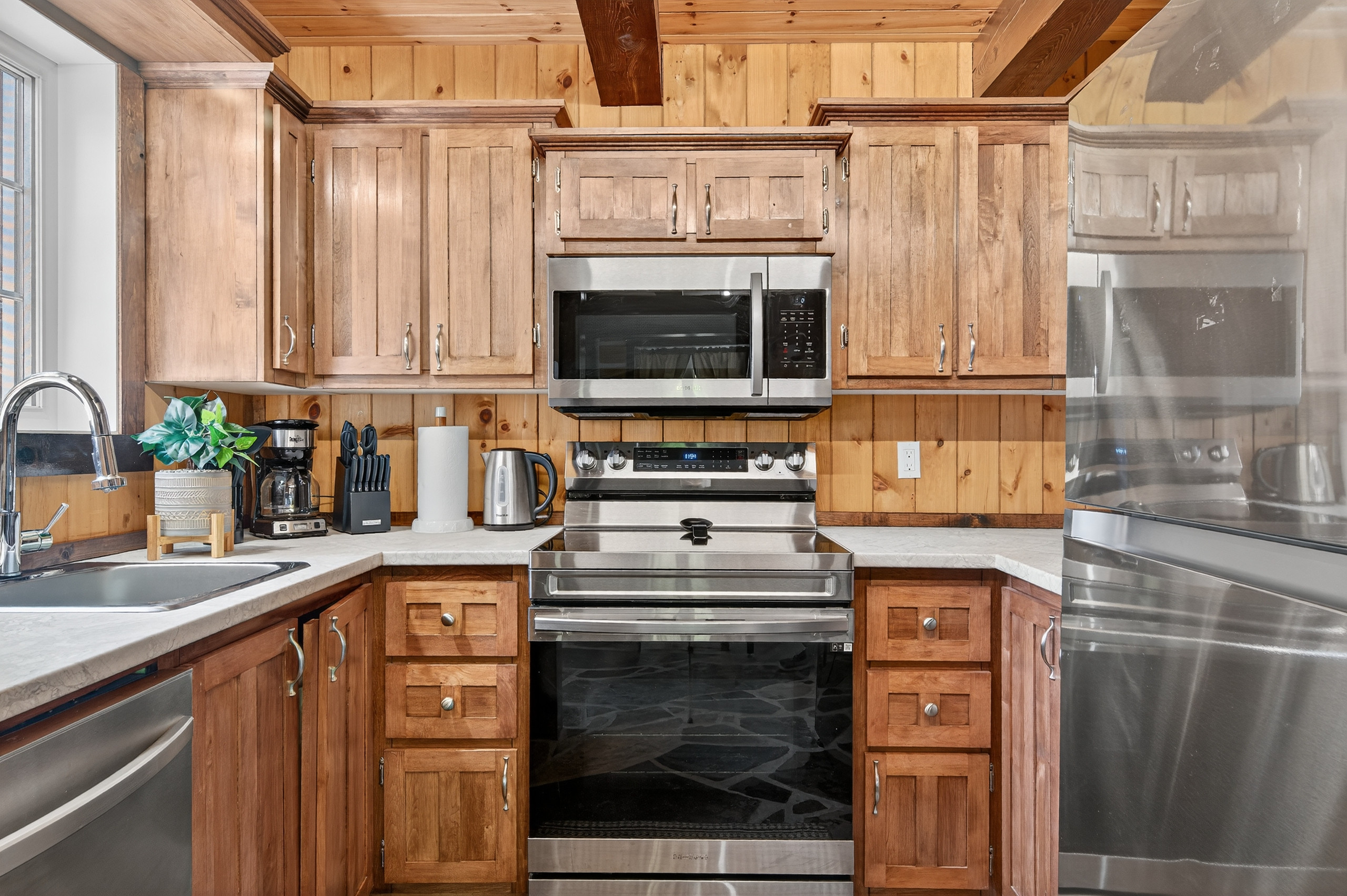 La cuisine américaine à vitrocéramique est complètement aménagée pour vos besoins culinaires. Elle comprend un réfrigérateur, un congélateur, un four, un micro-ondes, un lave-vaisselle, une cafetière, un grille-pain, une bouilloire, ainsi que tous les ustensiles et la vaisselle nécessaires pour préparer vos repas en toute facilité.