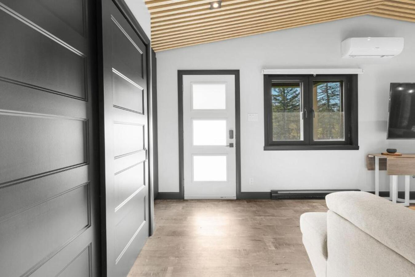 L'intérieur dispose de 3 chambres confortables pouvant accueillir jusqu'à 8 personnes, avec un agencement flexible comprenant un lit king-size, deux lits queen-size et un canapé-lit. Deux salles de bains - l'une avec douche et l'autre avec baignoire - garantissent le confort de tous les voyageurs.
