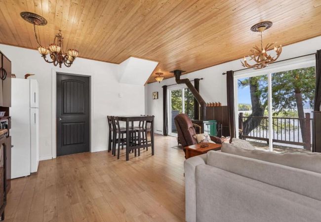 L'intérieur a été soigneusement meublé avec goût, proposant un espace de vie convivial avec une cuisine américaine entièrement équipée. Vous y trouverez tous les équipements nécessaires : réfrigérateur, machine à café, four, lave-vaisselle, micro-ondes, vaisselle, grille-pain et bouilloire. La cheminée apportera une touche de caractère et de chaleur pendant vos soirées.