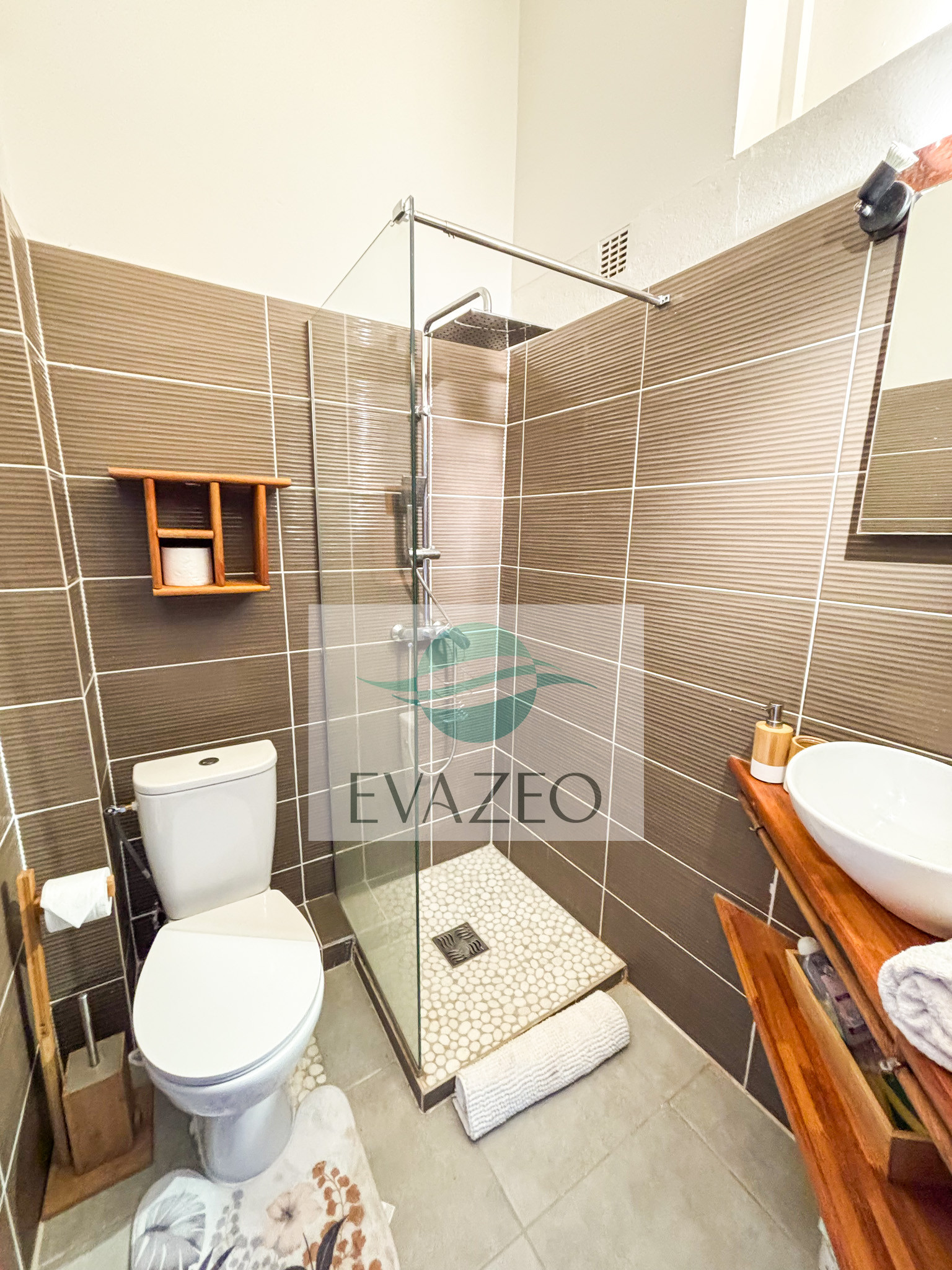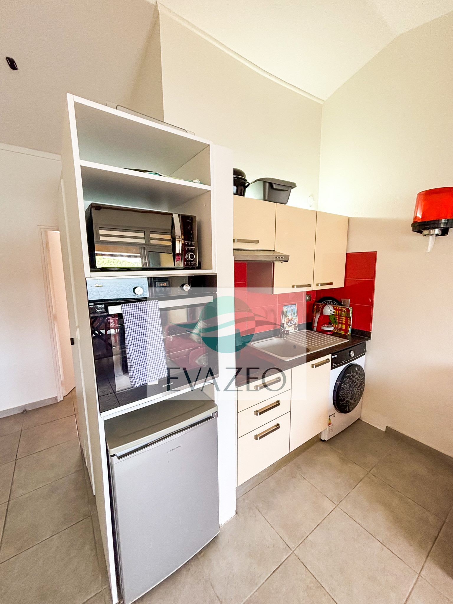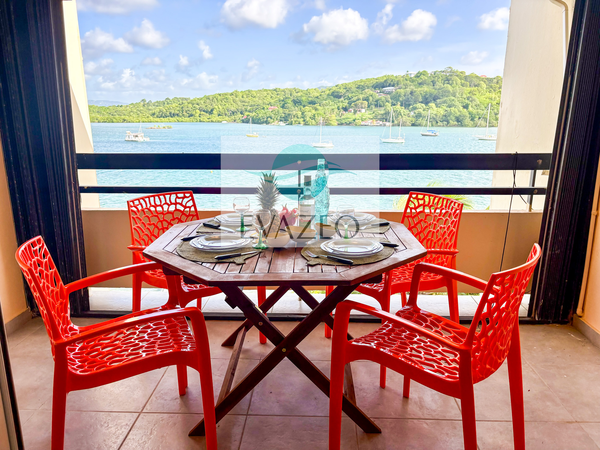 La terrasse est l'un des points forts de ce logement, offrant un espace extérieur parfait pour profiter des soirées tropicales et admirer la vue sur la mer. Vous apprécieriez la proximité immédiate de la plage de sable, à seulement 100 mètres, ainsi que l'accès facile aux restaurants situés à 500 mètres.