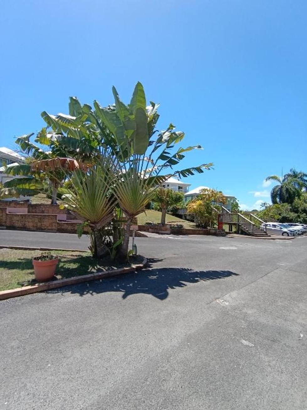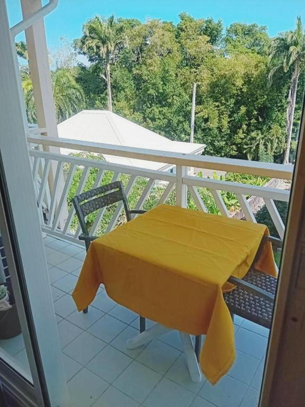 Jardin/terrasse : balcon avec vue sur le jardin équipé d'une table et de chaises pour vos repas. La Résidence est entourée d'un jardin tropical arboré et fleuri de 5 Ha.