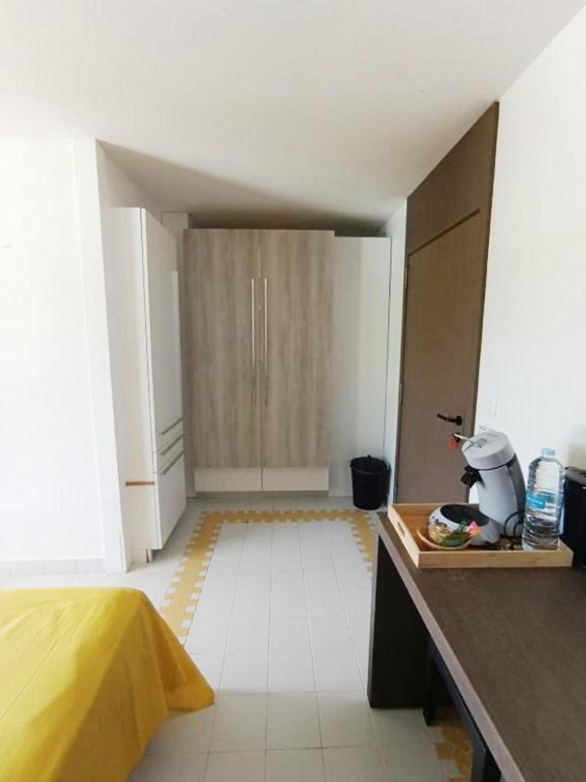 Agencement : le studio est situé au 2ème étage d'un petit bâtiment de style colonial et dispose au sein de sa grande pièce à vivre climatisée d'un coin nuit avec lit double en 160x200 et placards de rangement, salle d'eau avec lavabo/douche/wc, kitchenette équipée, balcon, piscine et jardin communs à la résidence, parking privatif...