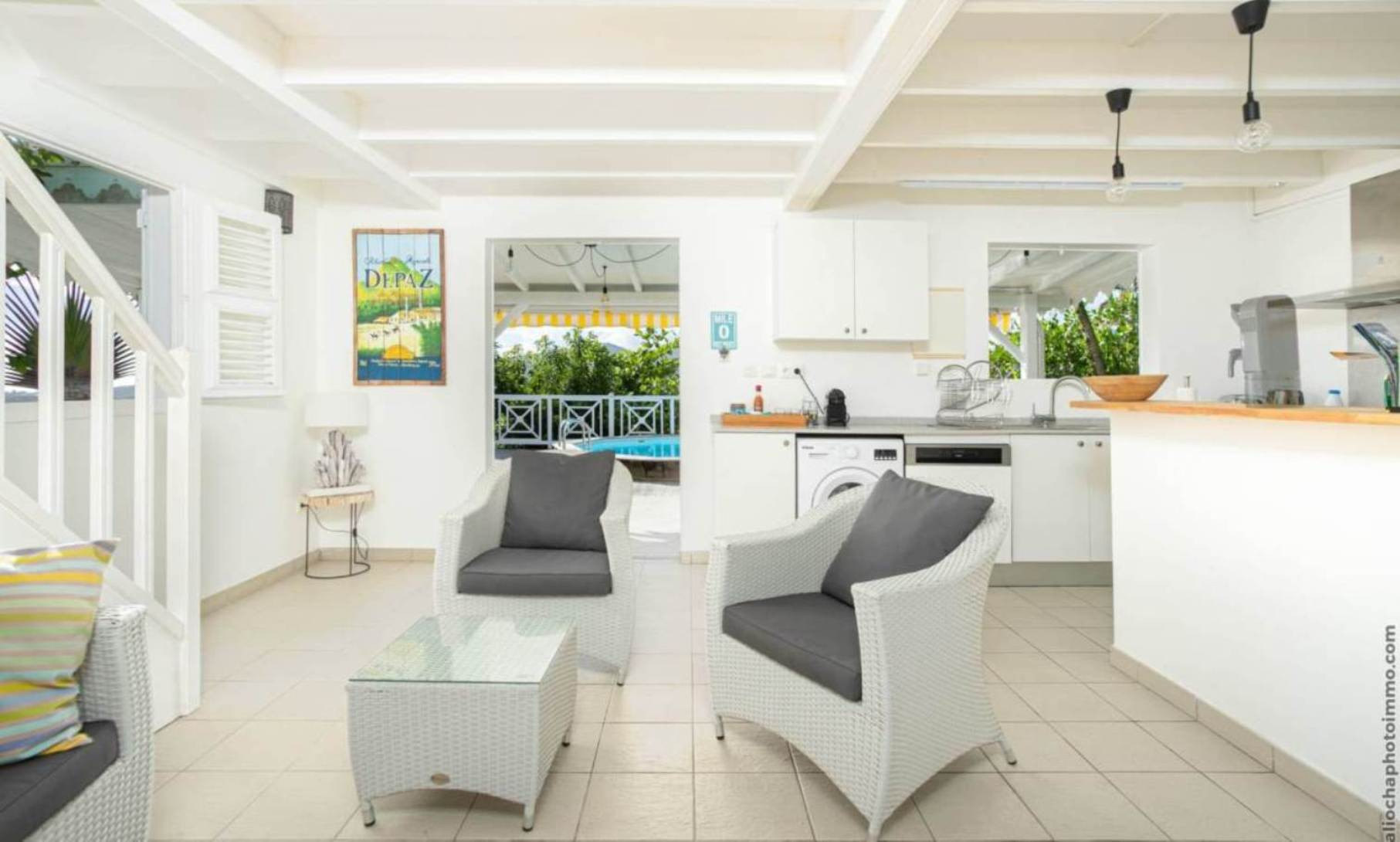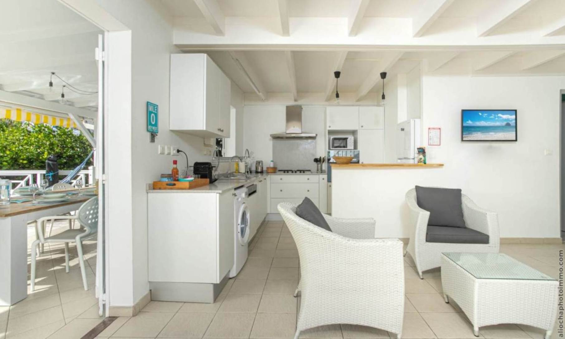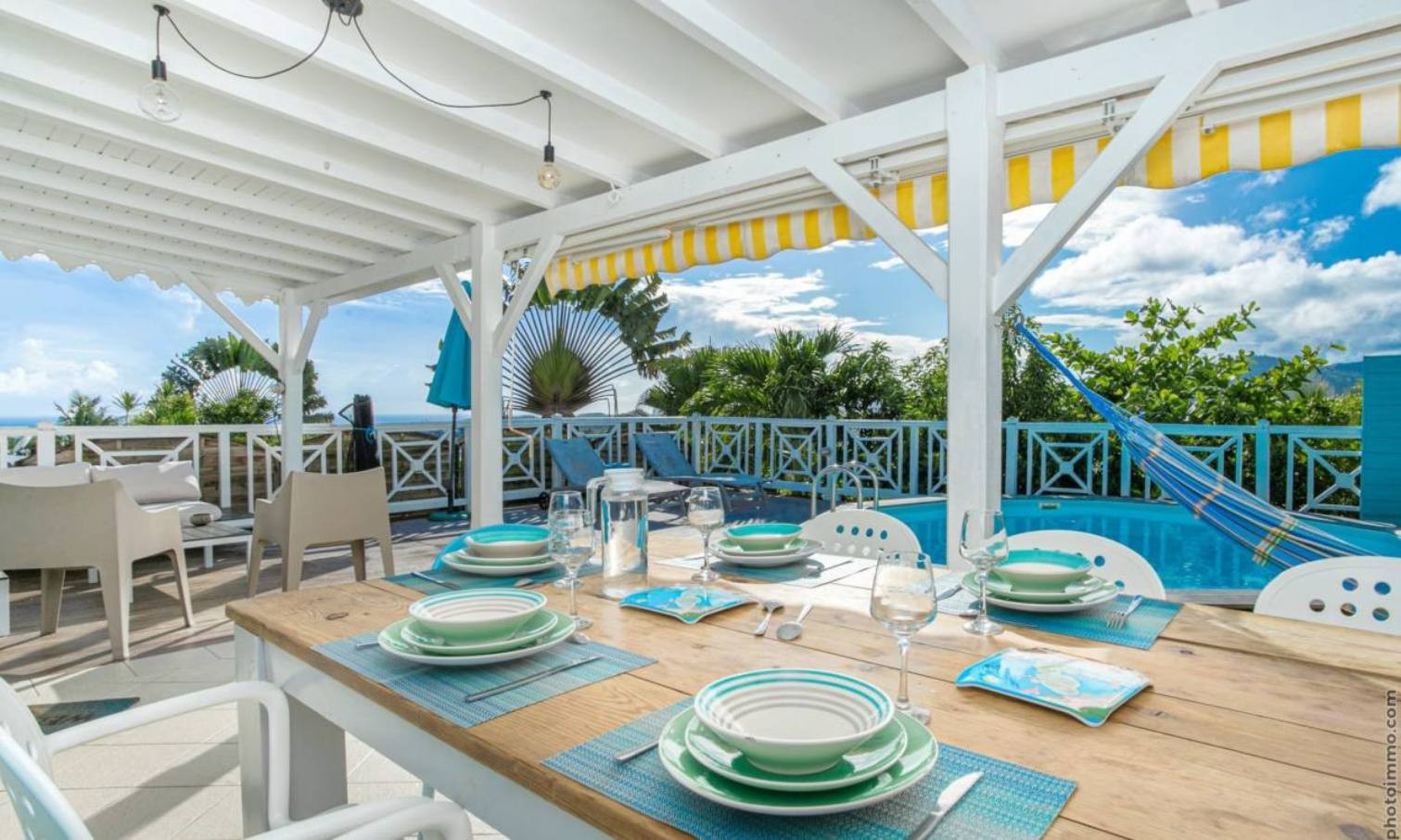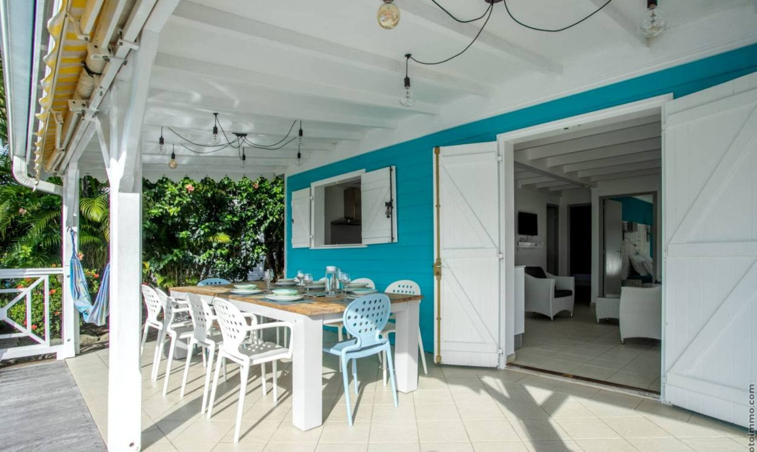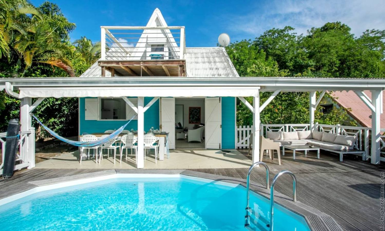Villa à Rivière-Salée qui possède 3 chambre(s) et Capacité pour 6 personnes. Logement de 100 m² meublé avec goût et très lumineux, avec vue sur la mer et le jardin. La location se trouve à 0 m de la plage de roche, 3 km de la ville, 3 km du supermarché, 3 km du restaurant, 8 km de la plage de sable "Sud Caraïbes" et il est situé dans une zone idéale pour familles zone et proche du commerce et des restaurants. Elle dispose de jardin, mobilier de jardin, clôture, terrasse, lave-linge, barbecue, fer à repasser, accès internet (wifi), sèche-cheveux, climatisation dans toutes les chambres, piscine privée, parking extérieur même bâtiment, 1 Télévision. La cuisine américaine, est équipée avec réfrigérateur, micro-ondes, four, congélateur, lave-vaisselle, vaisselle/couverts, ustensiles/cuisine, cafetière et grille pain.