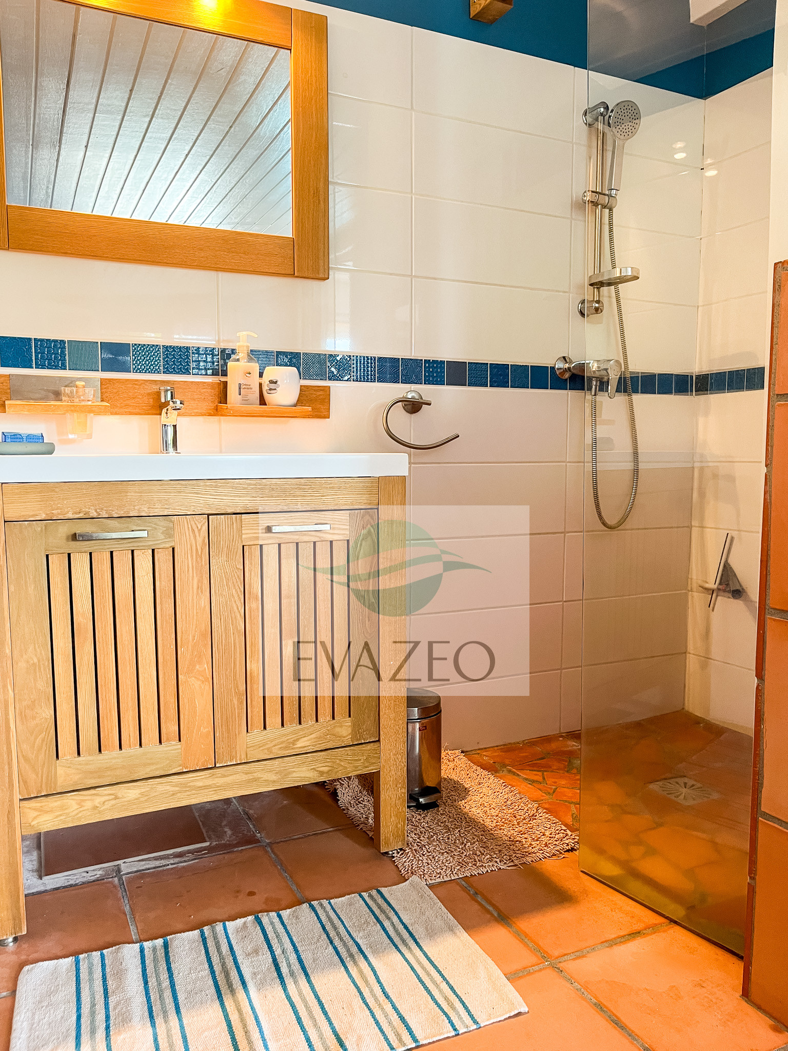 Agencement de la villa : la villa compte 2 chambres climatisées (lits double de 160), 2 salles d'eau (douche, wc, lavabo), salon avec lit de 140 (ventilateur plafonnier), cuisine équipée, terrasse partiellement couverte et piscine privée. A savoir la 2ème chambre est accessible uniquement par la terrasse (pas de porte intérieure), elle dispose de sa salle d'eau (douche, lavabo, wc) et d'un réfrigérateur.