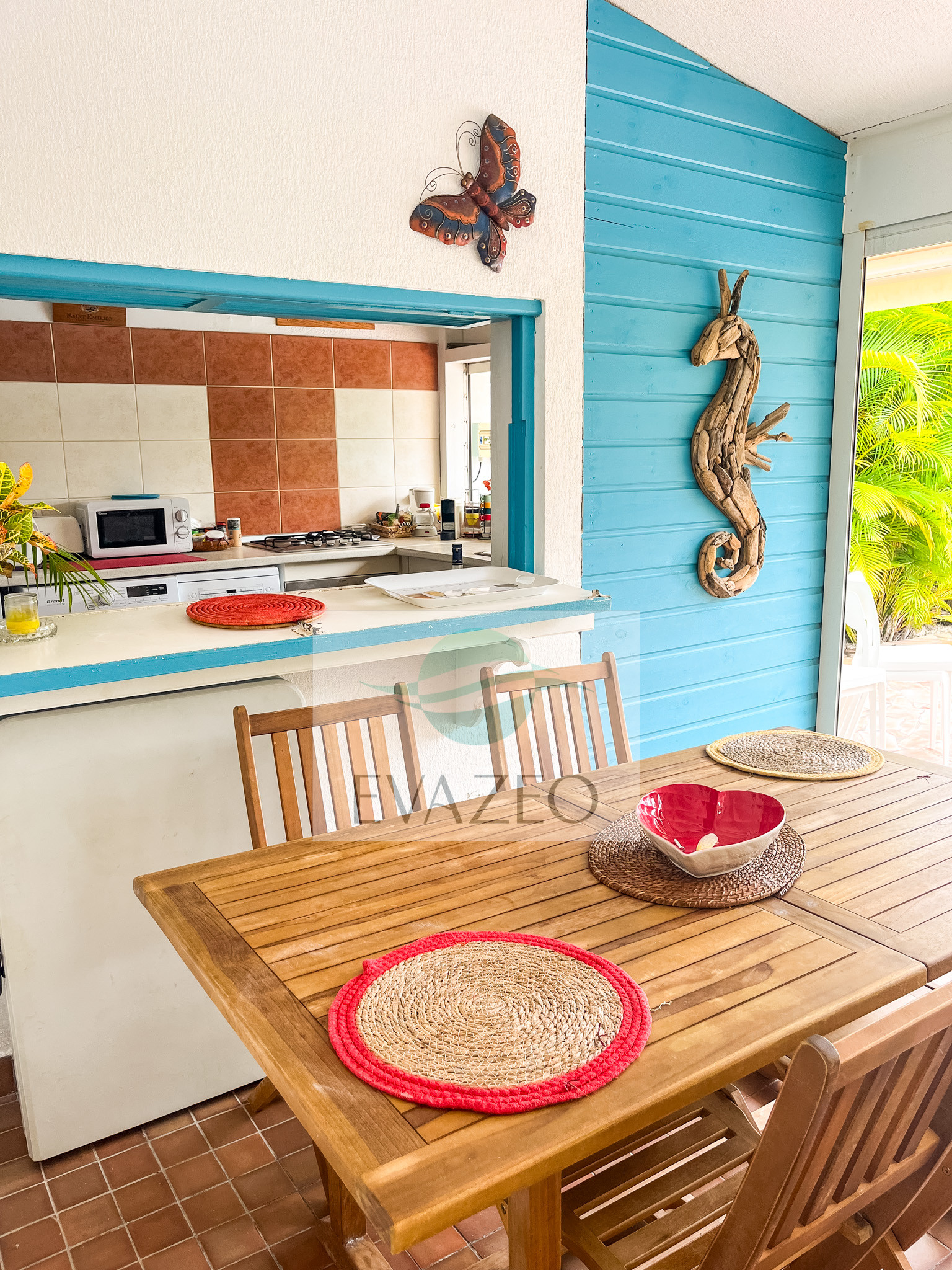 Charmante petite villa à Saint François avec piscine, moderne, très bien équipée et agréablement décorée. Cette maison se trouve dans un quartier résidentiel très calme néanmoins à proximité immédiate par une petite route du centre ville de la station balnéaire de Saint François et de ses plages.