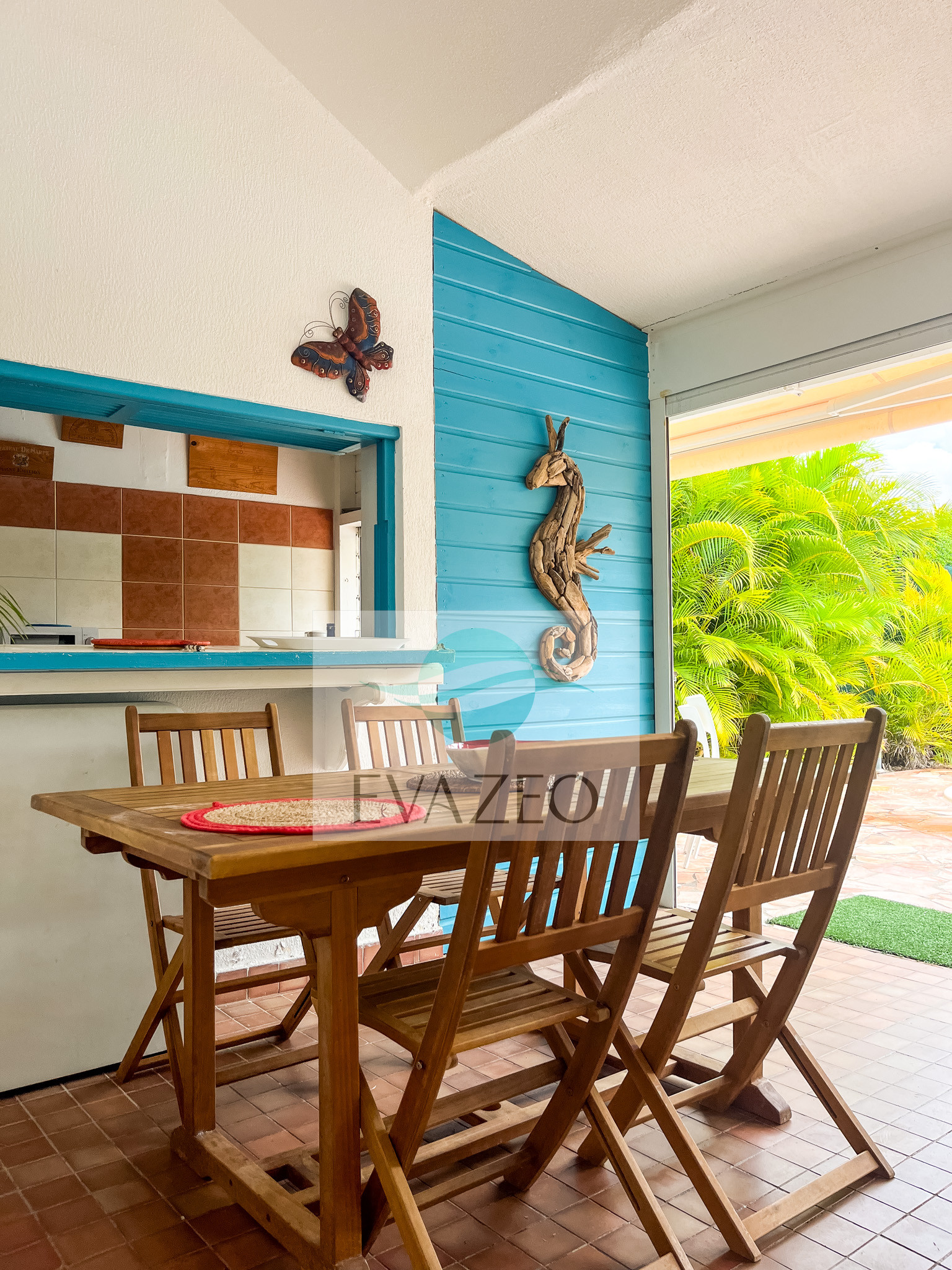 Jolie maison mitoyenne, située à Saint François dans un lotissement de villas de même standing, au calme, à 400 mètres de la plage. Cette maison a été meublée, équipée et décorée de façon à garantir le confort de ses occupants. L'endroit est idéal pour un séjour sous les signes du repos et du dépaysement.