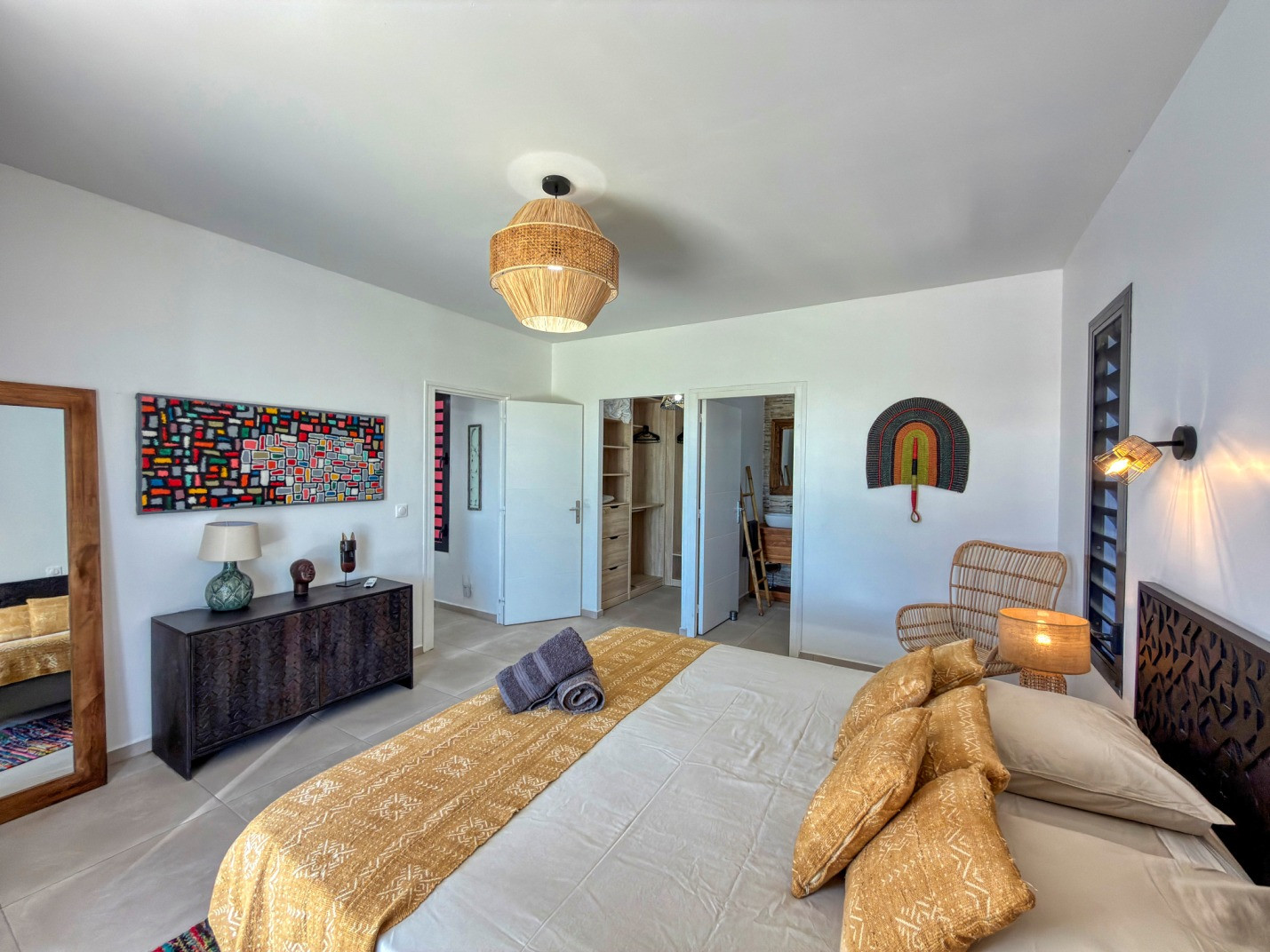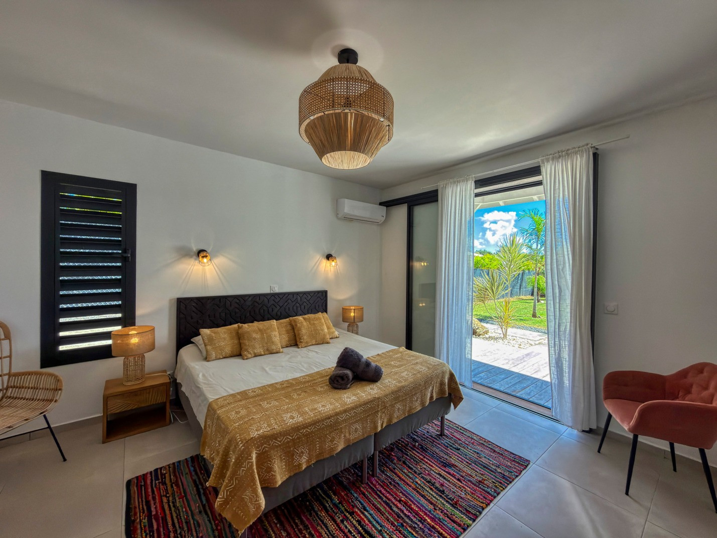 Possibilité de rajouter deux matelas d'appoint dans les chambres climatisées ou de couchage additionnel pour 2 personnes dans le salon (canapé lit).