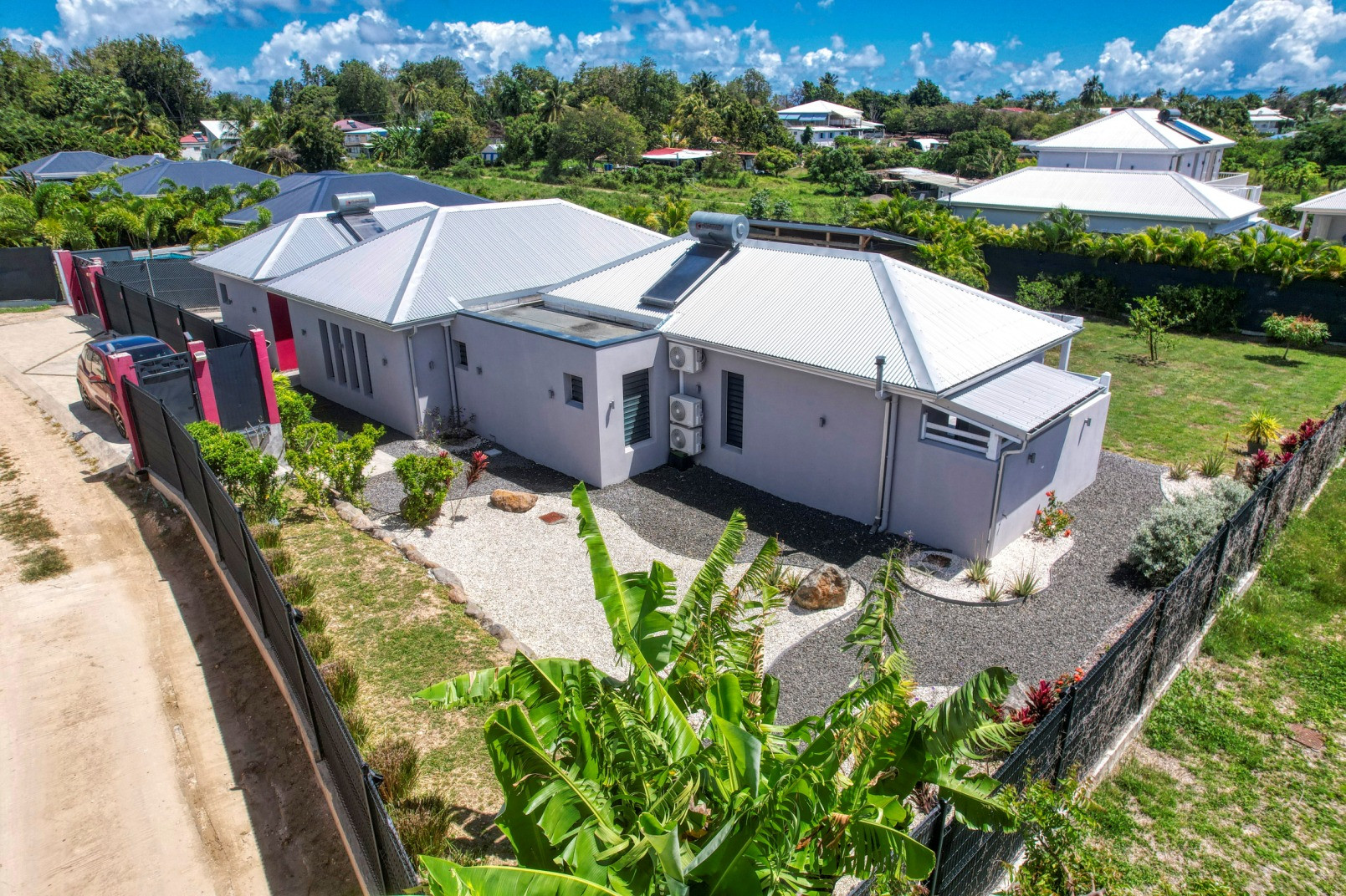 Belle villa récente, idéalement située dans un secteur résidentiel très calme à proximité du centre ville de Saint François et de ses plages. De grands volumes, une décoration design, un mobilier de grande qualité et des équipements très modernes, tout dans cette villa a été étudié de façon à apporter confort et sérénité à ses occupants tout au long de leur séjour. L'endroit est idéal pour des vacances reposantes et conviviales, en famille ou entre amis, sous le soleil des Antilles.