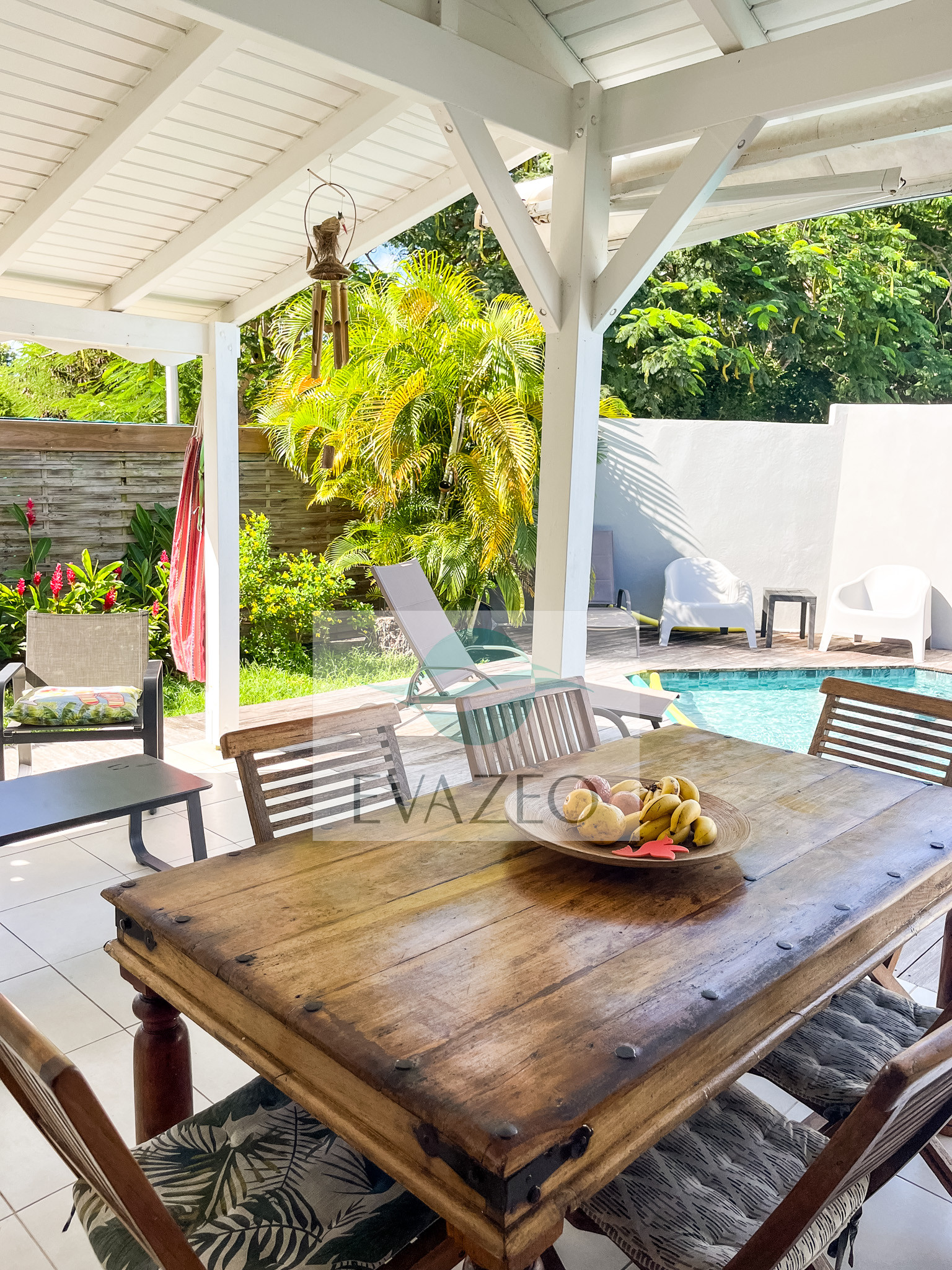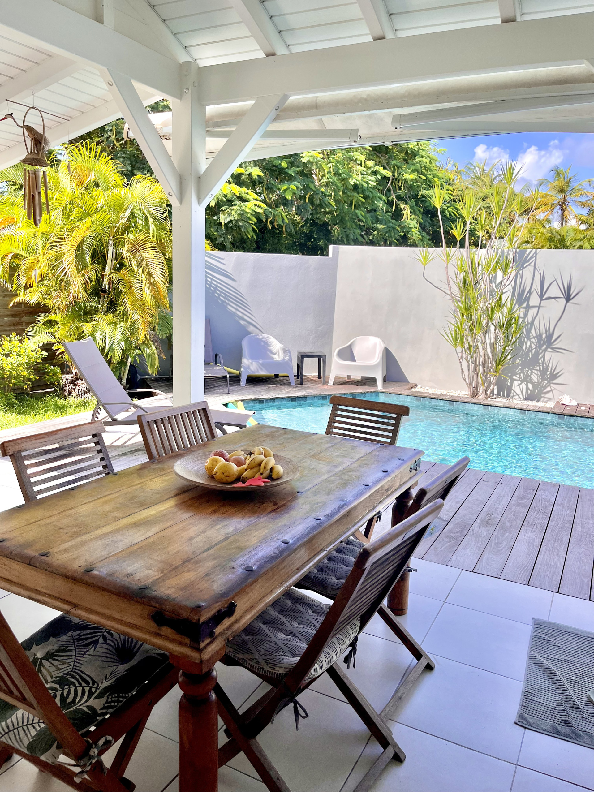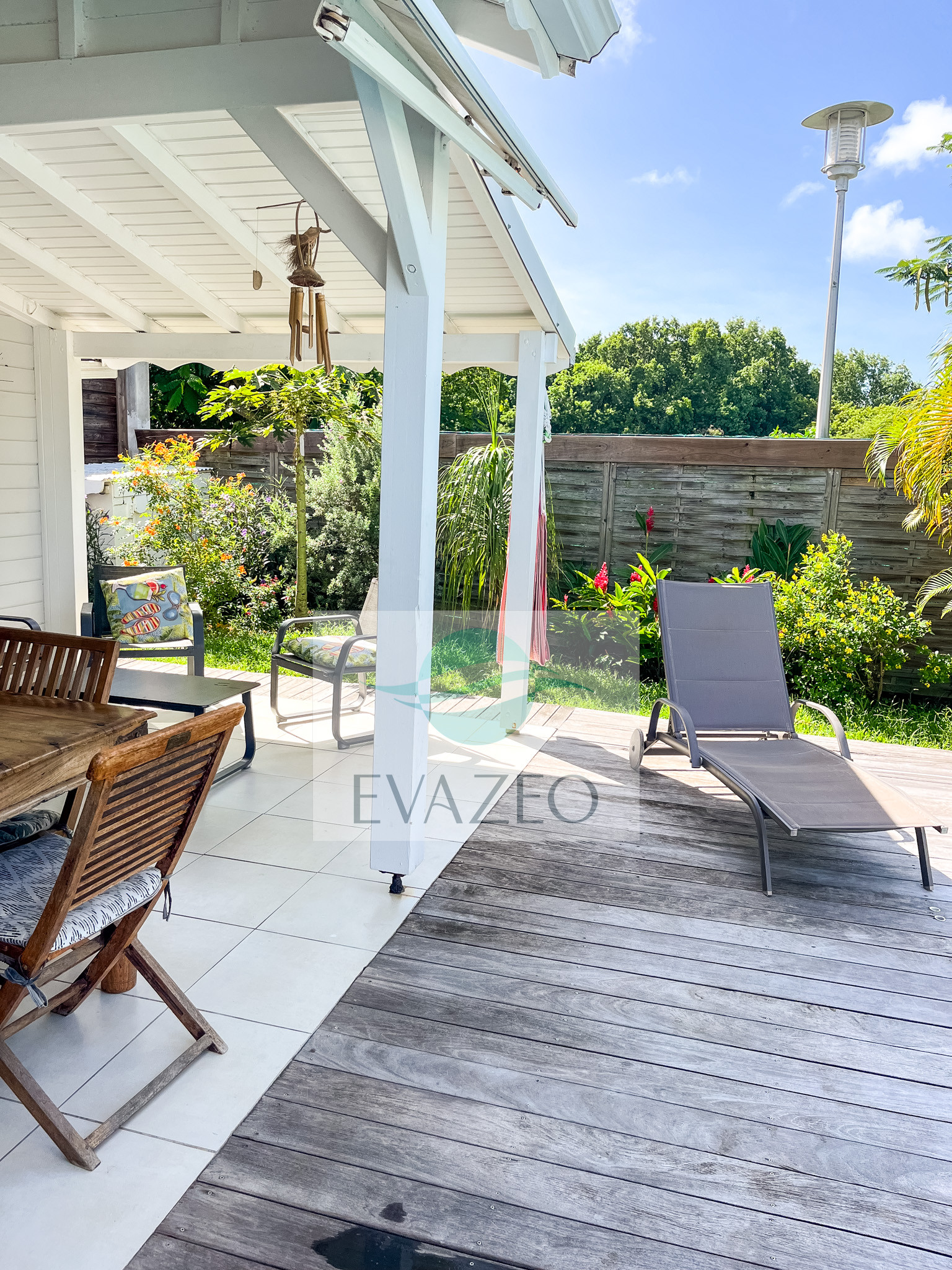 Très jolie maison, idéalement située dans une zone résidentielle très calme, sur la commune de Saint François à proximité de la plage et du centre ville. Equipée et décorée avec grand soin, cette agréable maison dispose également d'un grand jardin arboré et de nombreux espaces extérieurs pour un séjour convivial en famille ou entre amis.