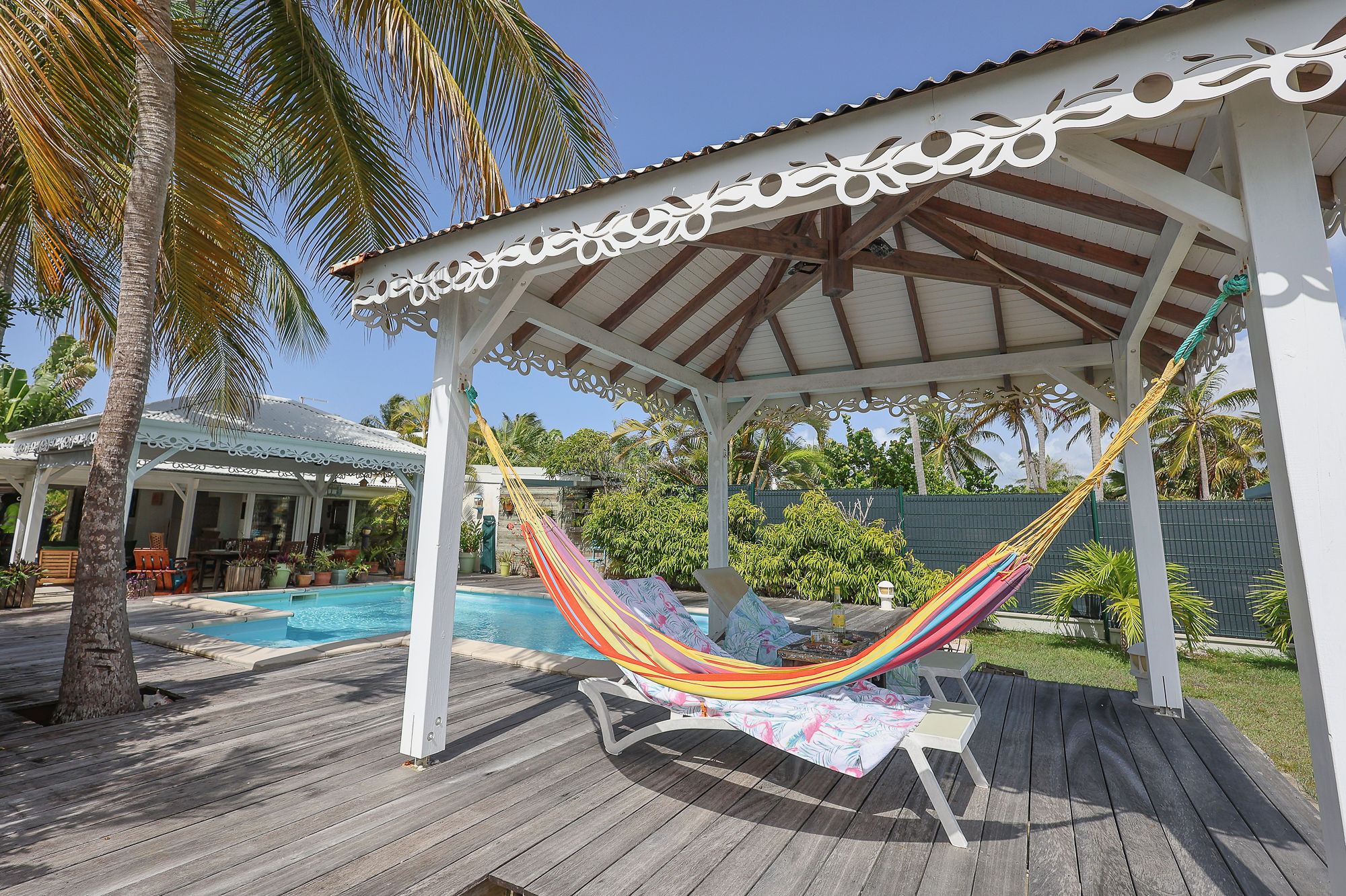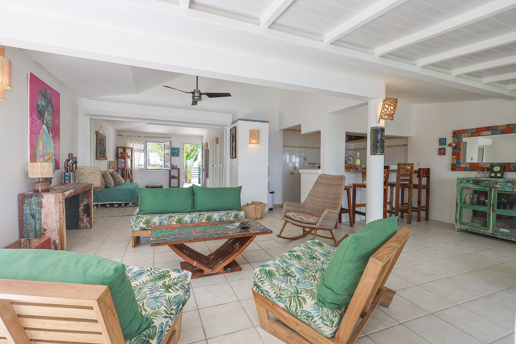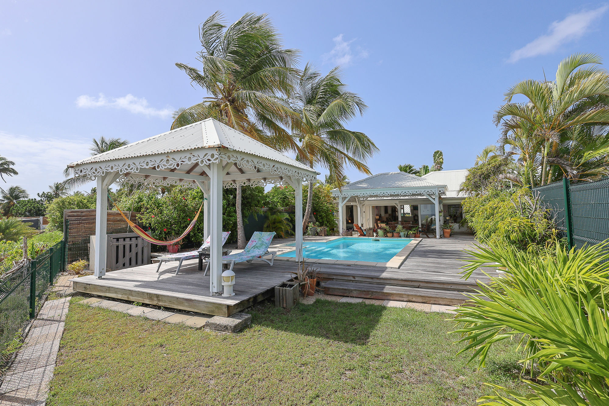 Villa de charme, décorée avec soin et parfaitement équipée idéalement située à proximité immédiate à pieds de la plage et à quelques minutes de la fameuse station balnéaire de Saint François. Nichée dans un écrin de verdure, au calme et offrant une très belle vue sur la mer, cette villa est le cocon idéal pour des vacances réussies sous les tropiques.