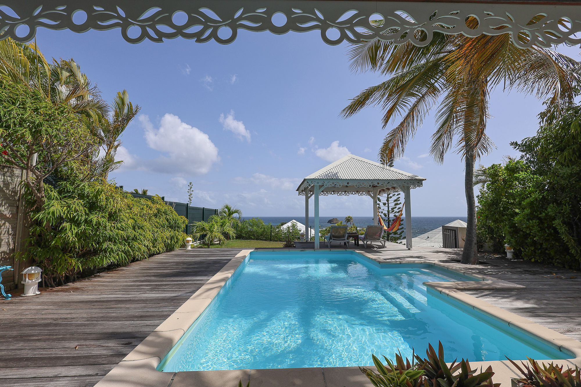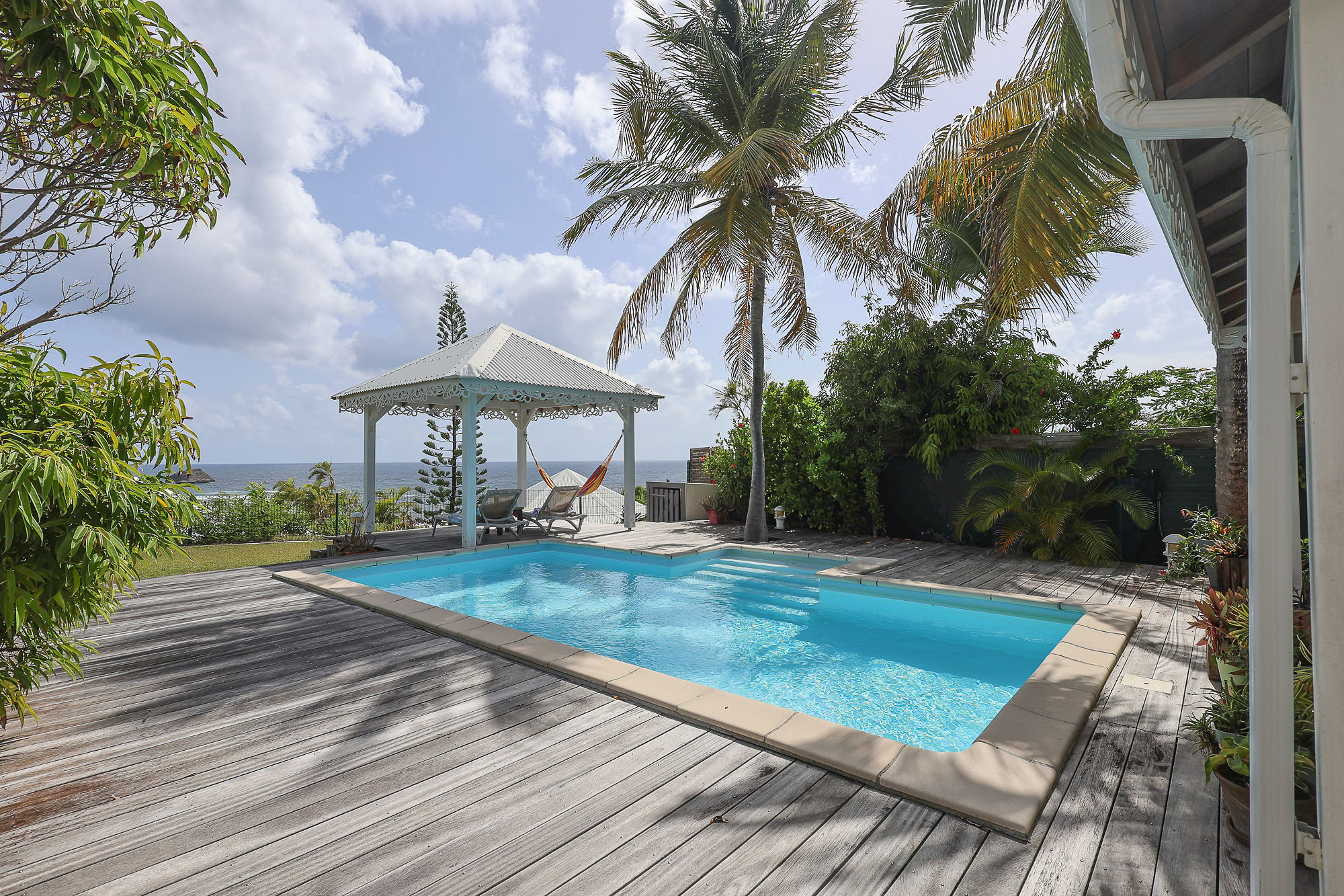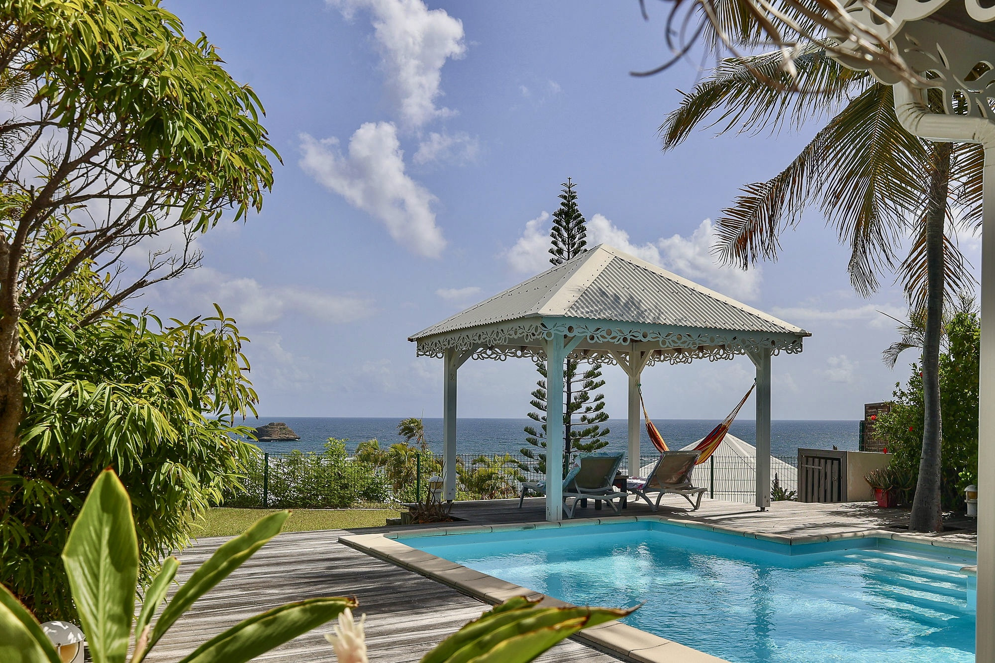 Villa de charme, décorée avec soin et parfaitement équipée idéalement située à proximité immédiate à pieds de la plage et à quelques minutes de la fameuse station balnéaire de Saint François. Nichée dans un écrin de verdure, au calme et offrant une très belle vue sur la mer, cette villa est le cocon idéal pour des vacances réussies sous les tropiques.