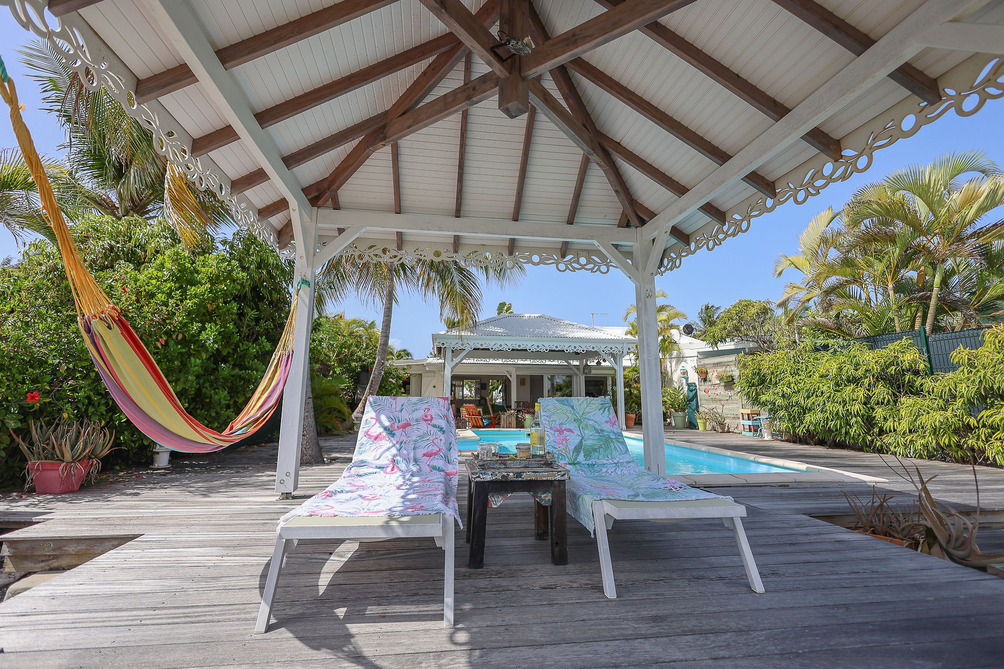 Services associés : à votre arrivée vous attendront un ti-punch, diverses boissons chaudes et froides ainsi que les éléments du premier petit déjeuner.