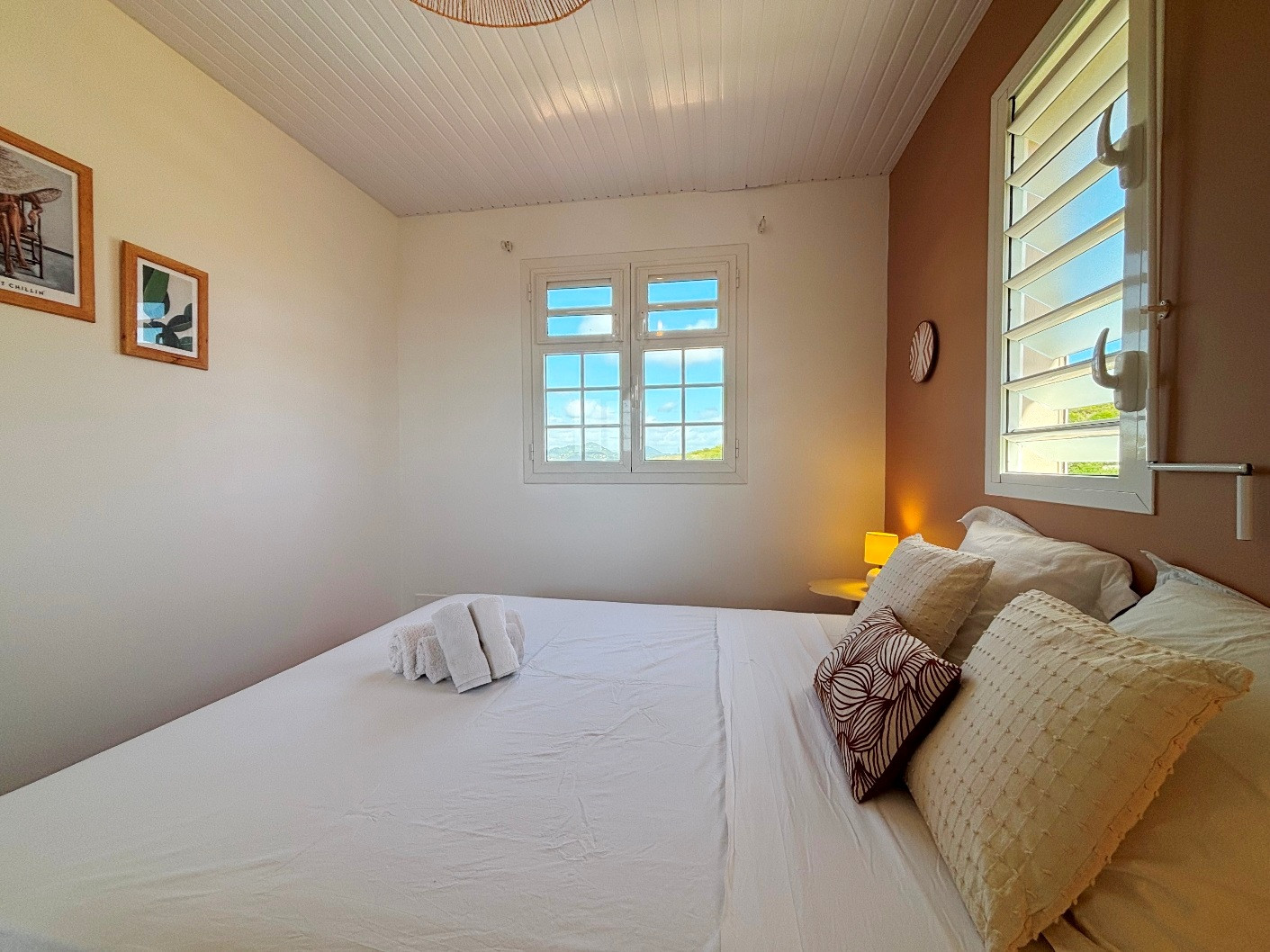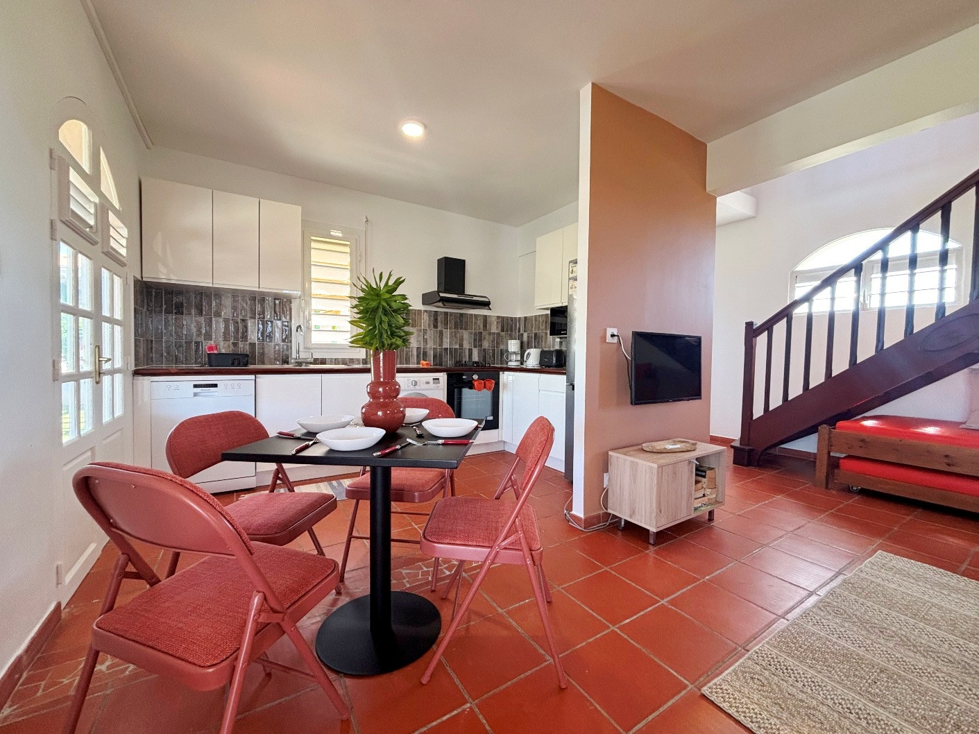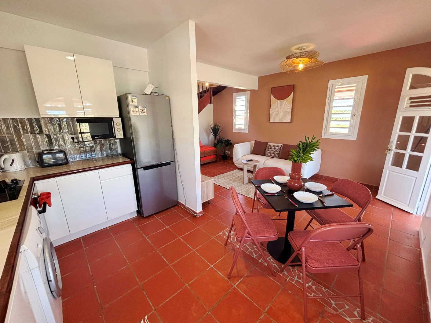 Beaucoup de charme pour cette petite maison, nichée dans la verdure, dans un secteur pavillonnaire très calme sur la commune de Sainte Anne, à quelques minutes à pieds de la plage. Cette villa, décorée et équipée avec beaucoup de soin, est l'endroit idéal pour une petite famille ou un couple d'amoureux en recherche d'un séjour bucolique sous les tropiques.