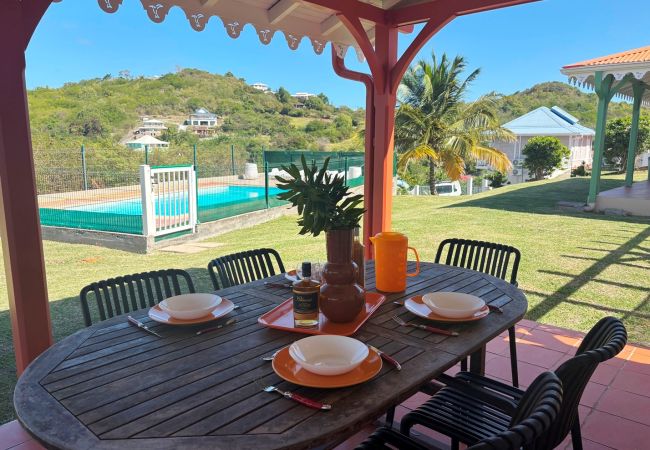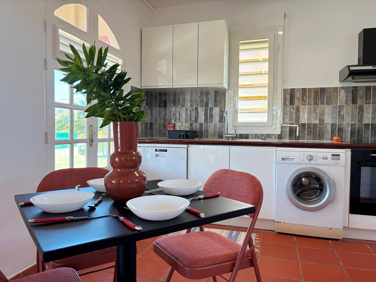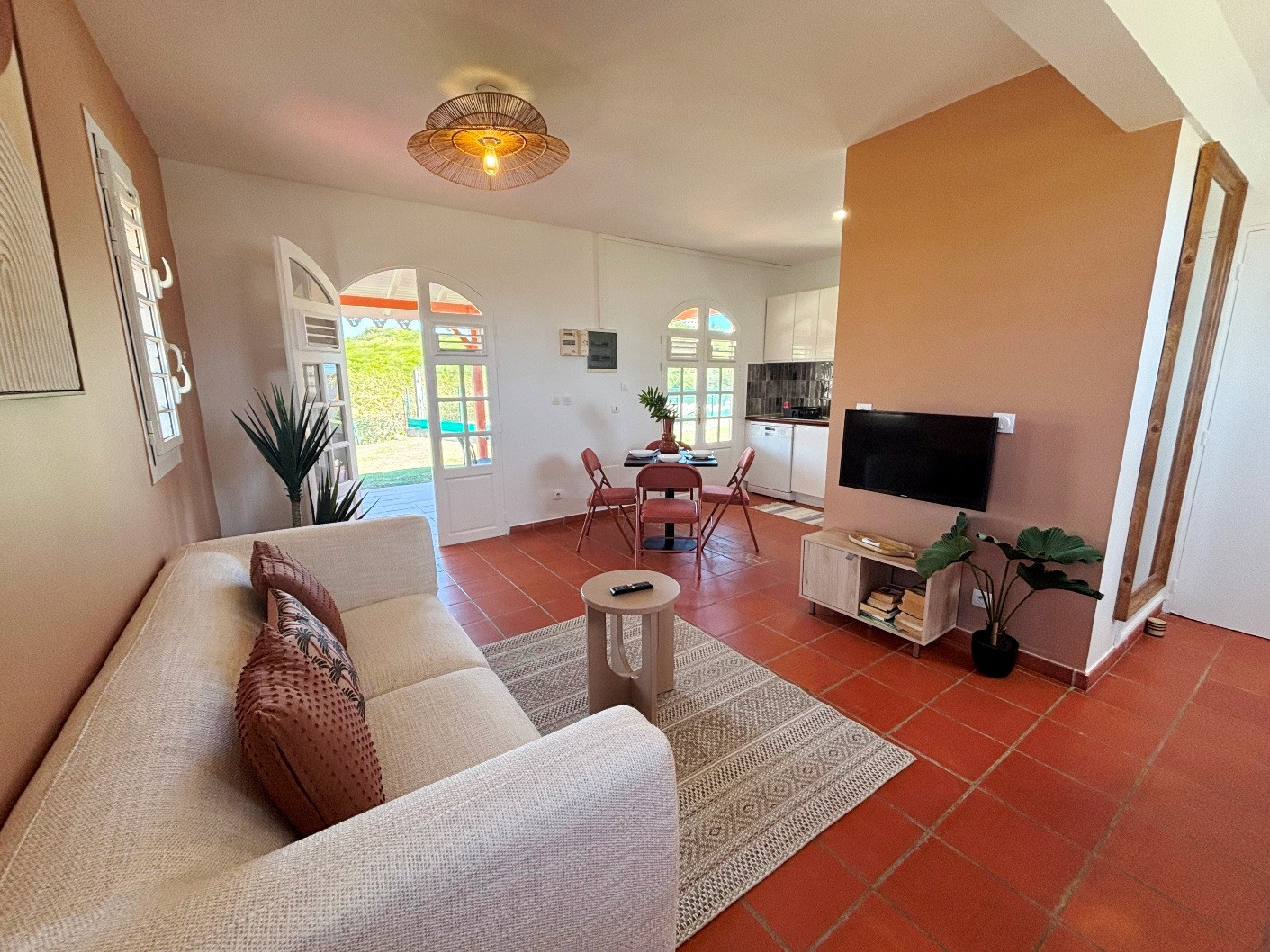 Beaucoup de charme pour cette petite maison, nichée dans la verdure, dans un secteur pavillonnaire très calme sur la commune de Sainte Anne, à quelques minutes à pieds de la plage. Cette villa, décorée et équipée avec beaucoup de soin, est l'endroit idéal pour une petite famille ou un couple d'amoureux en recherche d'un séjour bucolique sous les tropiques.
