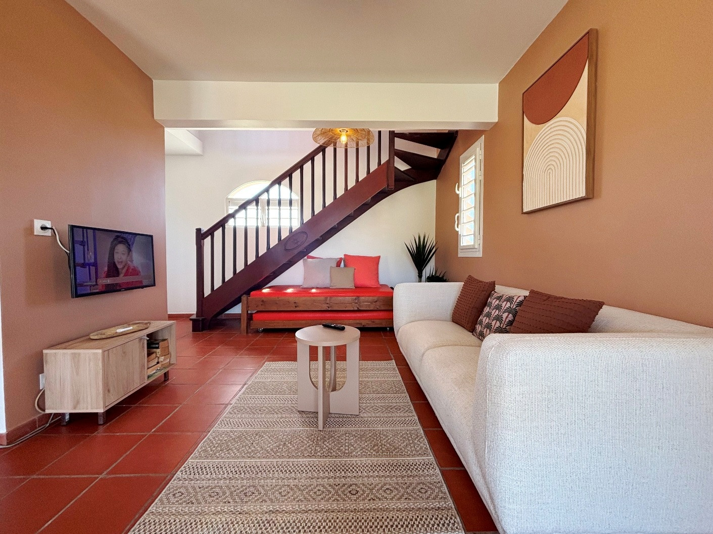 Petite maison mitoyenne sur un côté, très bien équipée et joliment décorée, idéalement située dans le domaine de Belfond sur la commune de Sainte Anne à quelques centaines de mètres de la plage et à proximité immédiate des commerces. Nichée dans la verdure, elle est idéale pour 4 à 5 personnes et est un parfait point de départ pour partir à la découverte de la Martinique !